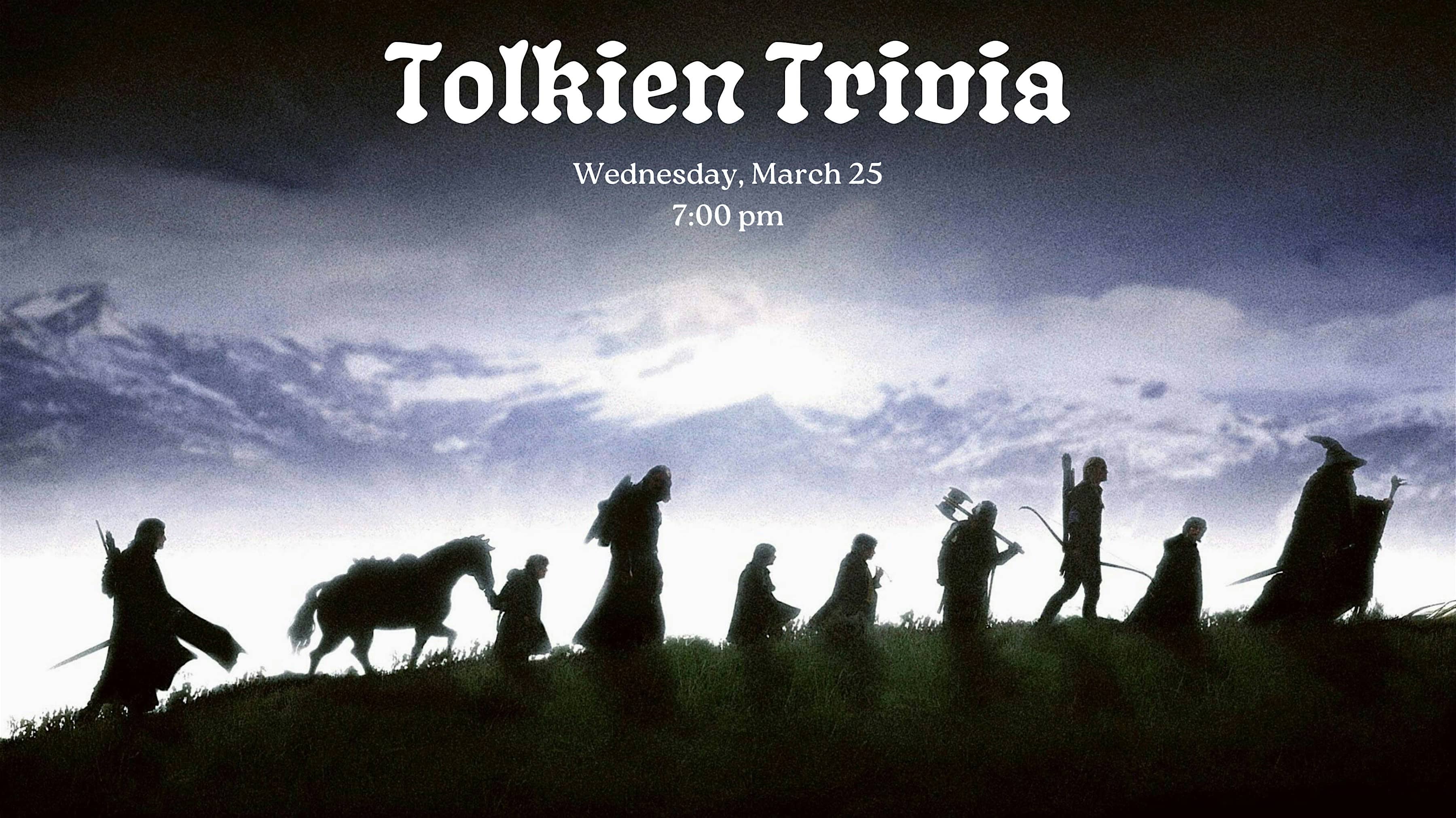 by admin23Feb Tolkien Reading Day: TOLKIEN TRIVIA PARTY at 667 Washington Ave – Brooklyn, NY Tolkien Reading Day: TOLKIEN TRIVIA PARTY at 667 Washington Ave – Brooklyn, NY 2 2 people viewed this event. Join us on March 25th (known as Tolkien Reading Day) with a TOLKIEN TRIVIA PARTY. Tickets include trivia, wine, tea and light pastries! Tickets-RSVP Link Date And Time Wednesday, March 25th, 2026 @ 07:00 PM Location 667 Washington Avenue, Brooklyn, NY 11238 Event Types Party or Social Gathering Event Category New York Share With Friends Facebook Twitter Linkedin Xing Pinterest Share This Post: