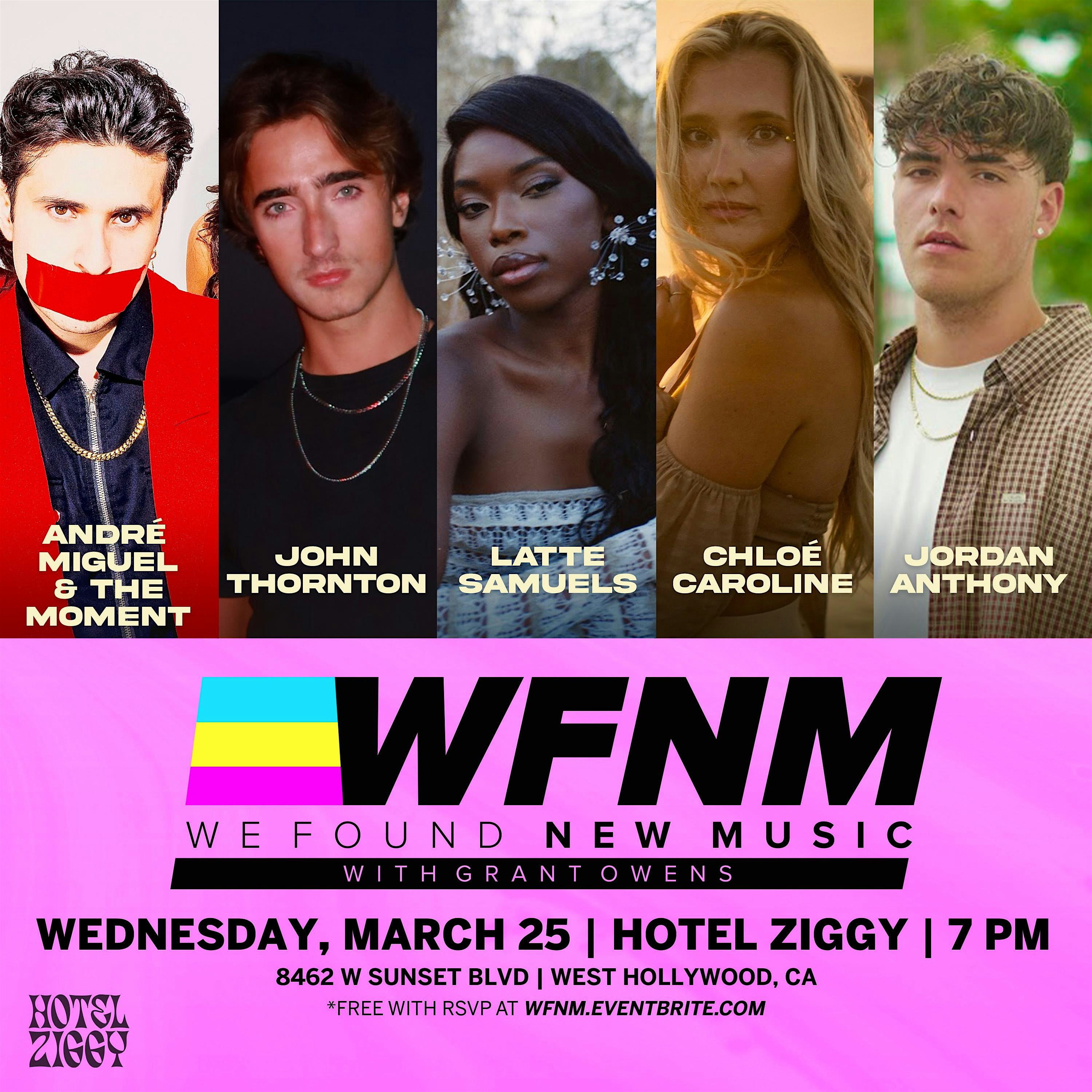 by admin13Feb André Miguell John Thornton Latte Samuels Chloé Caroline Jordan Anthony at Hotel Ziggy Los Angeles – West Hollywood, CA André Miguell John Thornton Latte Samuels Chloé Caroline Jordan Anthony at Hotel Ziggy Los Angeles – West Hollywood, CA 1 1 people viewed this event. WE FOUND NEW MUSIC Artist Discovery Concert Series LOCATION: Hotel Ziggy Free with RSVP 7:00pm Doors Tickets-RSVP Link Date And Time Thursday, March 26th, 2026 02:00 AM (PST) Venue Hotel Ziggy Los Angeles Location 8462 West Sunset Boulevard, West Hollywood, CA 90069 Event Types Concert or PerformanceMusic Event Category California Share With Friends Facebook Twitter Linkedin Xing Pinterest Share This Post: