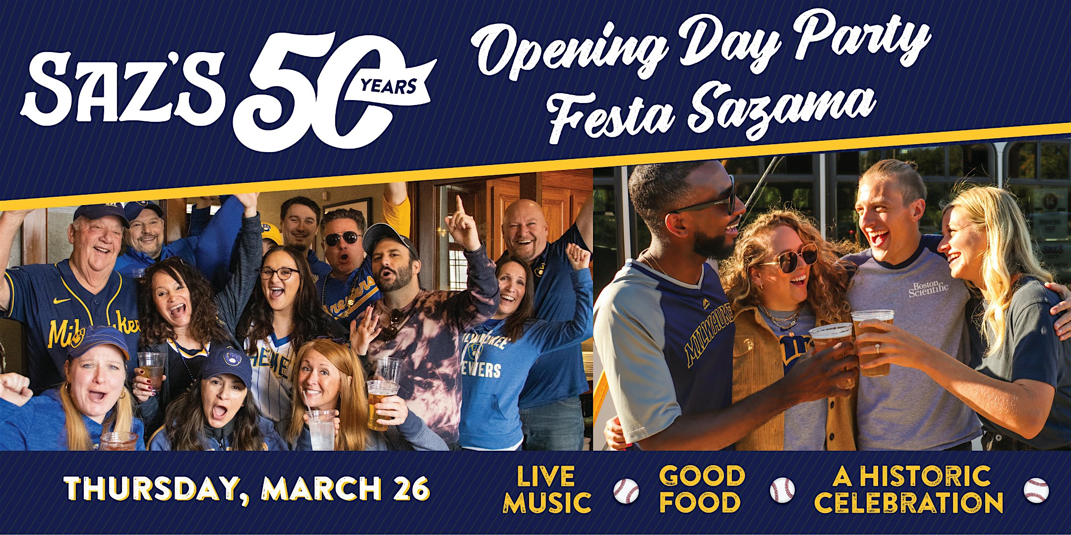 by admin13Feb Brewers Opening Day 2026: A Historic Kickoff at Saz’s State House at Saz’s State House – Milwaukee, WI Brewers Opening Day 2026: A Historic Kickoff at Saz’s State House at Saz’s State House – Milwaukee, WI 2 2 people viewed this event. Be a part of a historic weekend as we launch our 50th Anniversary year with the ultimate celebration, Festa Sazama! Tickets-RSVP Link Date And Time Thursday, March 26th, 2026 02:00 PM (PST) Venue Saz's State House Location 5539 West State Street, Milwaukee, WI 53208 Event Types Party or Social GatheringSports & Fitness Event Category MilwaukeeWisconsin Share With Friends Facebook Twitter Linkedin Xing Pinterest Share This Post: