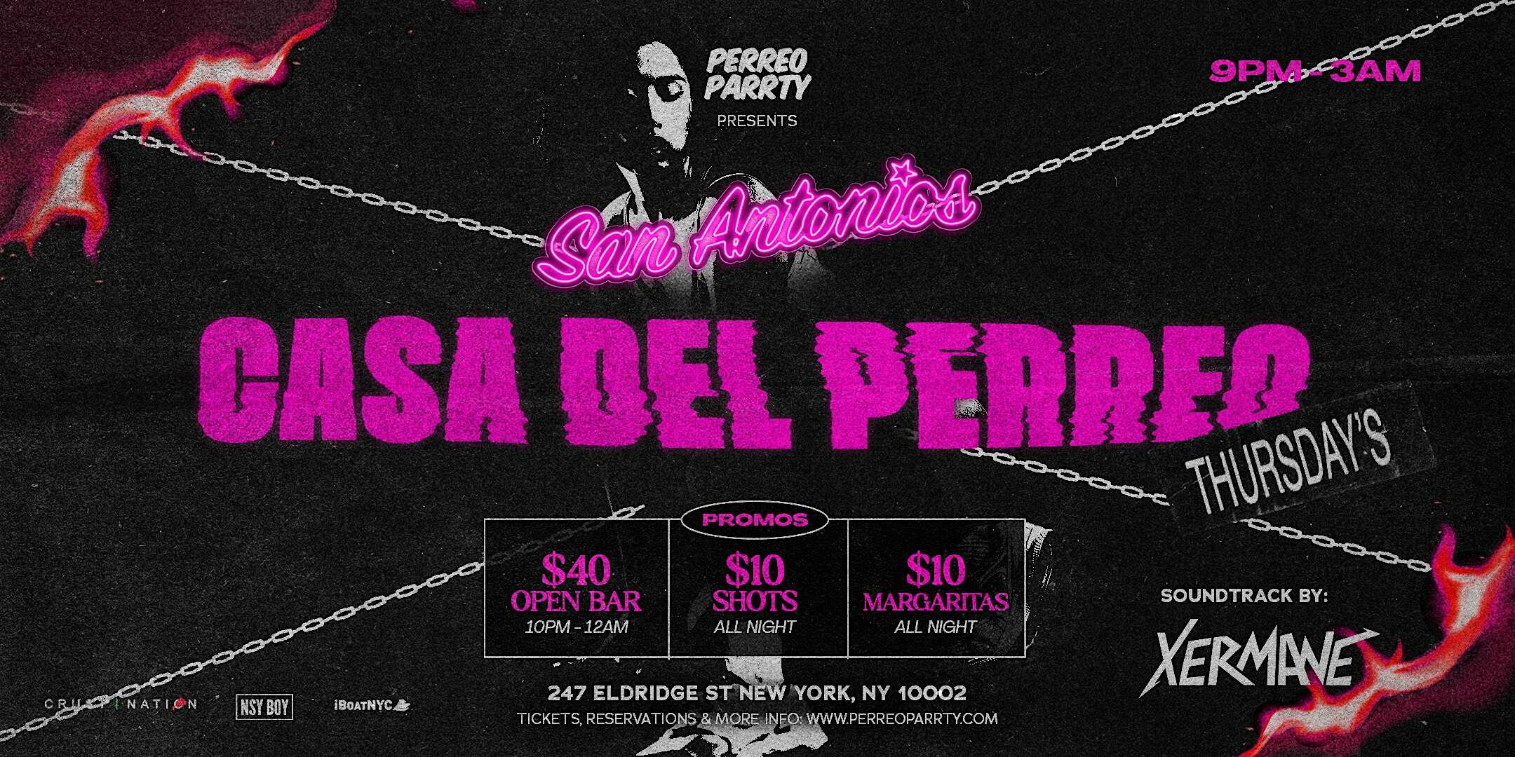 by admin23Feb Casa del Perreo – Latin & Reggaeton Party NYC at San Antonios – New York, NY Casa del Perreo – Latin & Reggaeton Party NYC at San Antonios – New York, NY 2 2 people viewed this event. New Thursday Series in the spirit of Reggaeton Tickets-RSVP Link Date And Time Thursday, March 26th, 2026 09:00 PM (PST) Venue San Antonios Location 247 Eldridge Street, New York, NY 10002 Event Types MusicParty or Social Gathering Event Category New YorkNew York City Share With Friends Facebook Twitter Linkedin Xing Pinterest Share This Post: