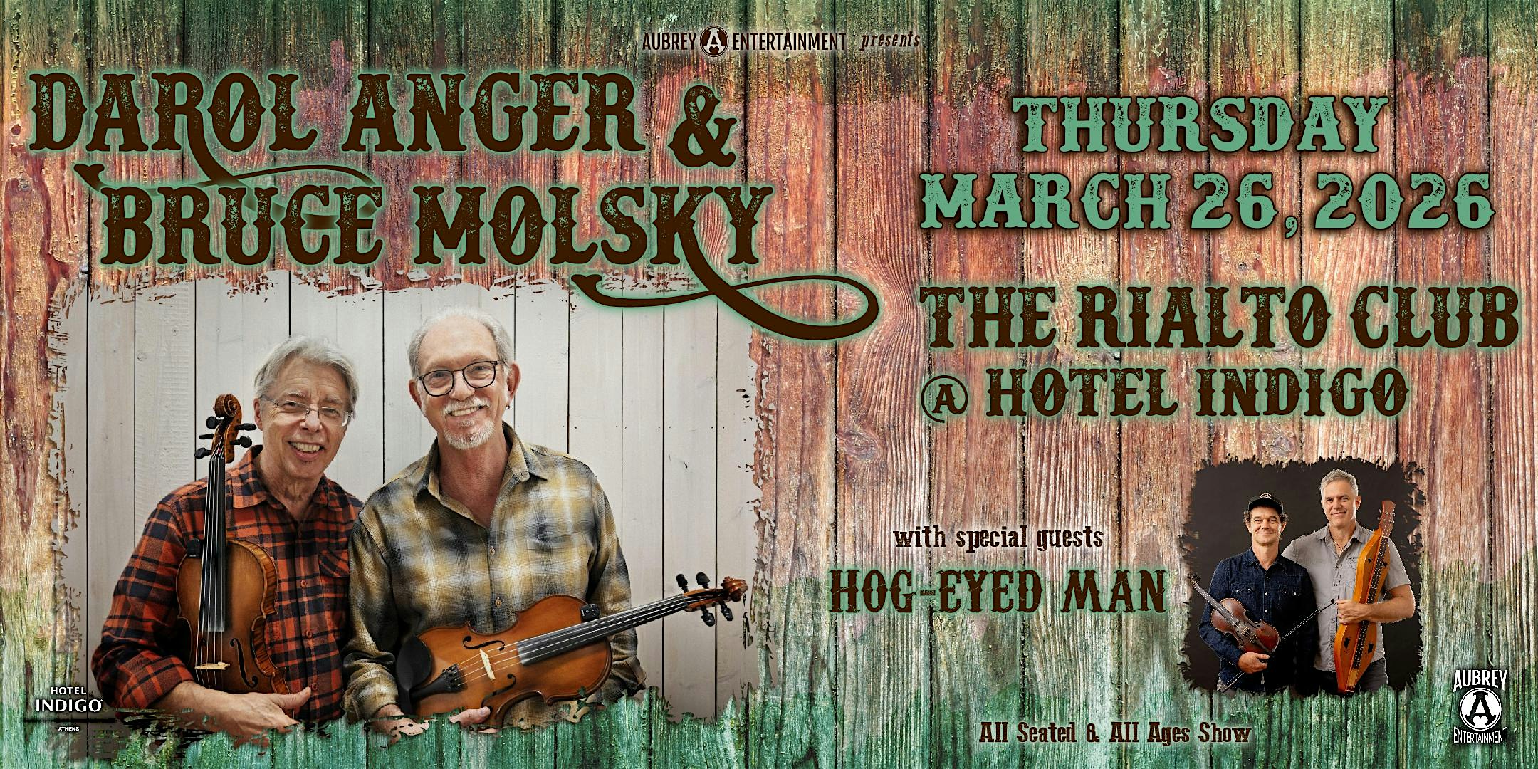 by admin13Feb Darol Anger & Bruce Molsky with Hog-Eyed Man @ The Rialto Club at The Rialto Club @ Hotel Indigo – Athens, GA Darol Anger & Bruce Molsky with Hog-Eyed Man @ The Rialto Club at The Rialto Club @ Hotel Indigo – Athens, GA 1 1 people viewed this event. Join us for a night of world class fiddle music with Darol Anger & Bruce Molsky at The Rialto Club – it’s going to be legendary! Tickets-RSVP Link Date And Time Thursday, March 26th, 2026 11:00 PM (PST) Venue The Rialto Club @ Hotel Indigo Location 500 College Avenue, Athens, GA 30601 Event Types Concert or PerformanceMusic Event Category Georgia Share With Friends Facebook Twitter Linkedin Xing Pinterest Share This Post:
