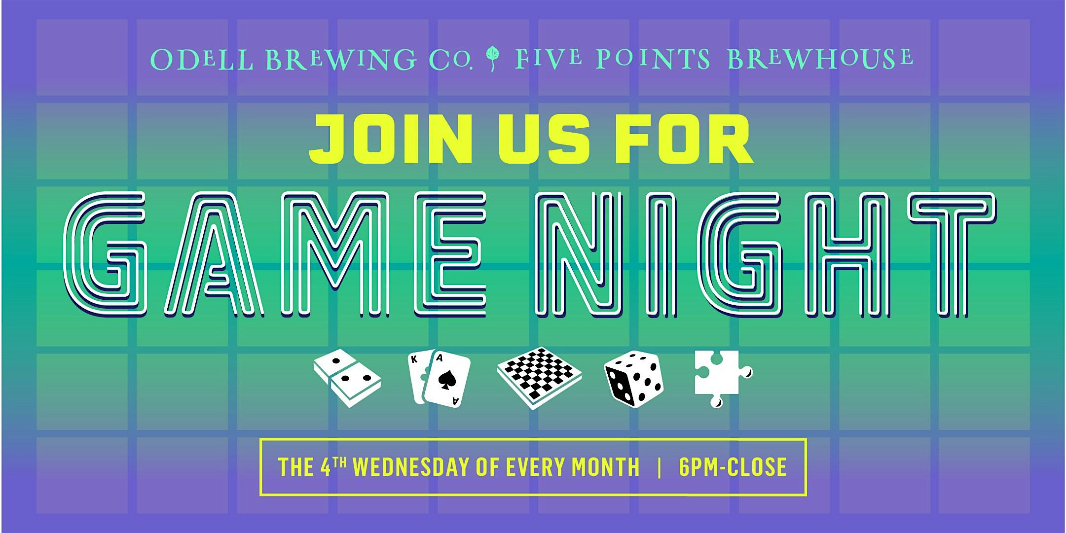 by admin13Feb Game Night at Odell Brewing Five Points Brewhouse – Denver, CO Game Night at Odell Brewing Five Points Brewhouse – Denver, CO 1 1 people viewed this event. Join us for game night! All games and skill levels welcome. Tickets-RSVP Link Date And Time Thursday, March 26th, 2026 01:00 AM (PST) Venue Odell Brewing Five Points Brewhouse Location 2945 Larimer Street, Denver, CO 80205 Event Types Party or Social Gathering Event Category ColoradoDenver Share With Friends Facebook Twitter Linkedin Xing Pinterest Share This Post: