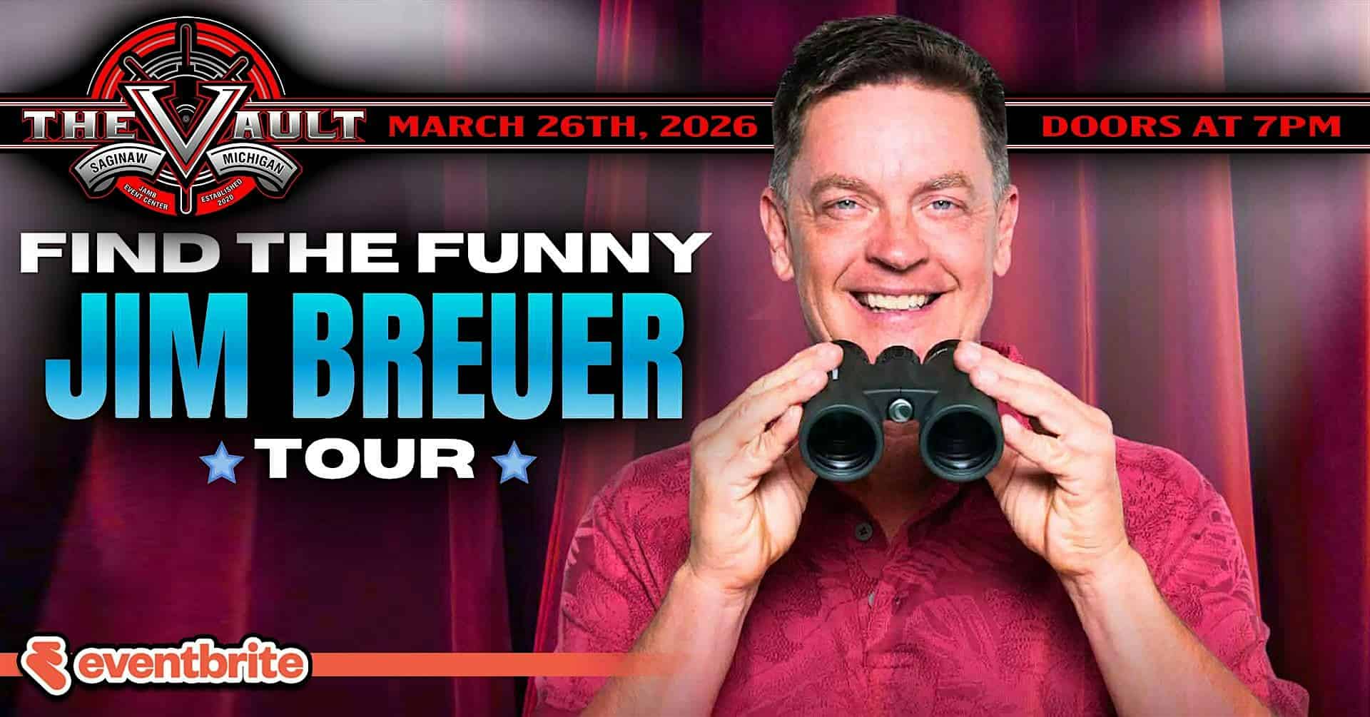 by admin14Feb JIM BREUER: Find The Funny wsg/ Bryan McKenna at The VAULT – Saginaw, MI JIM BREUER: Find The Funny wsg/ Bryan McKenna at The VAULT – Saginaw, MI 2 2 people viewed this event. “Comedy Night” Tickets-RSVP Link Date And Time Thursday, March 26th, 2026 11:00 PM (PST) Venue The VAULT Location 110 Florence Street, Saginaw, MI 48602 Event Types Concert or PerformancePerforming & Visual Arts Event Category Michigan Share With Friends Facebook Twitter Linkedin Xing Pinterest Share This Post: