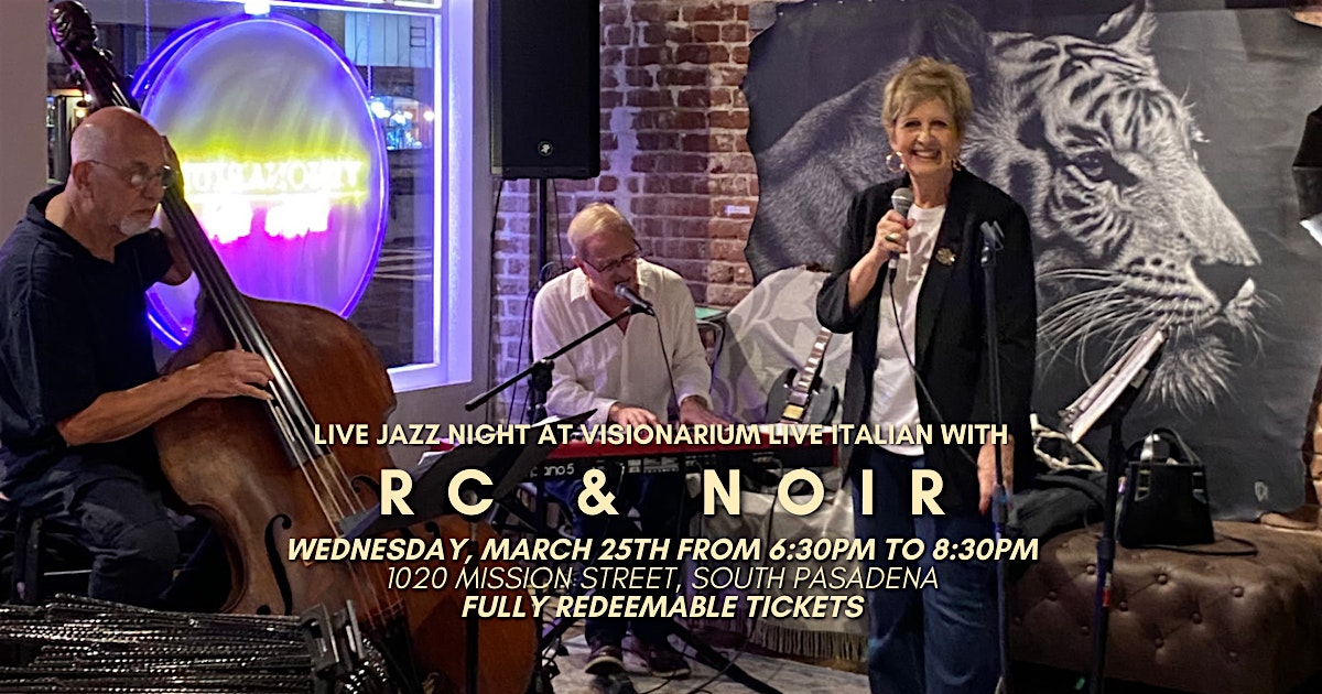 by admin13Feb Midweek Live Jazz Night at Visionarium at 1020 Mission St – South Pasadena, CA Midweek Live Jazz Night at Visionarium at 1020 Mission St – South Pasadena, CA 1 1 people viewed this event. Back once again by popular demand, RC & Noir return to Visionarium for another elegant jazz night. Tickets-RSVP Link Date And Time Thursday, March 26th, 2026 01:00 AM (PST) Venue 1020 Mission St Location 1020 Mission Street, South Pasadena, CA 91030 Event Types Concert or PerformanceMusic Event Category CaliforniaLos Angeles Share With Friends Facebook Twitter Linkedin Xing Pinterest Share This Post: