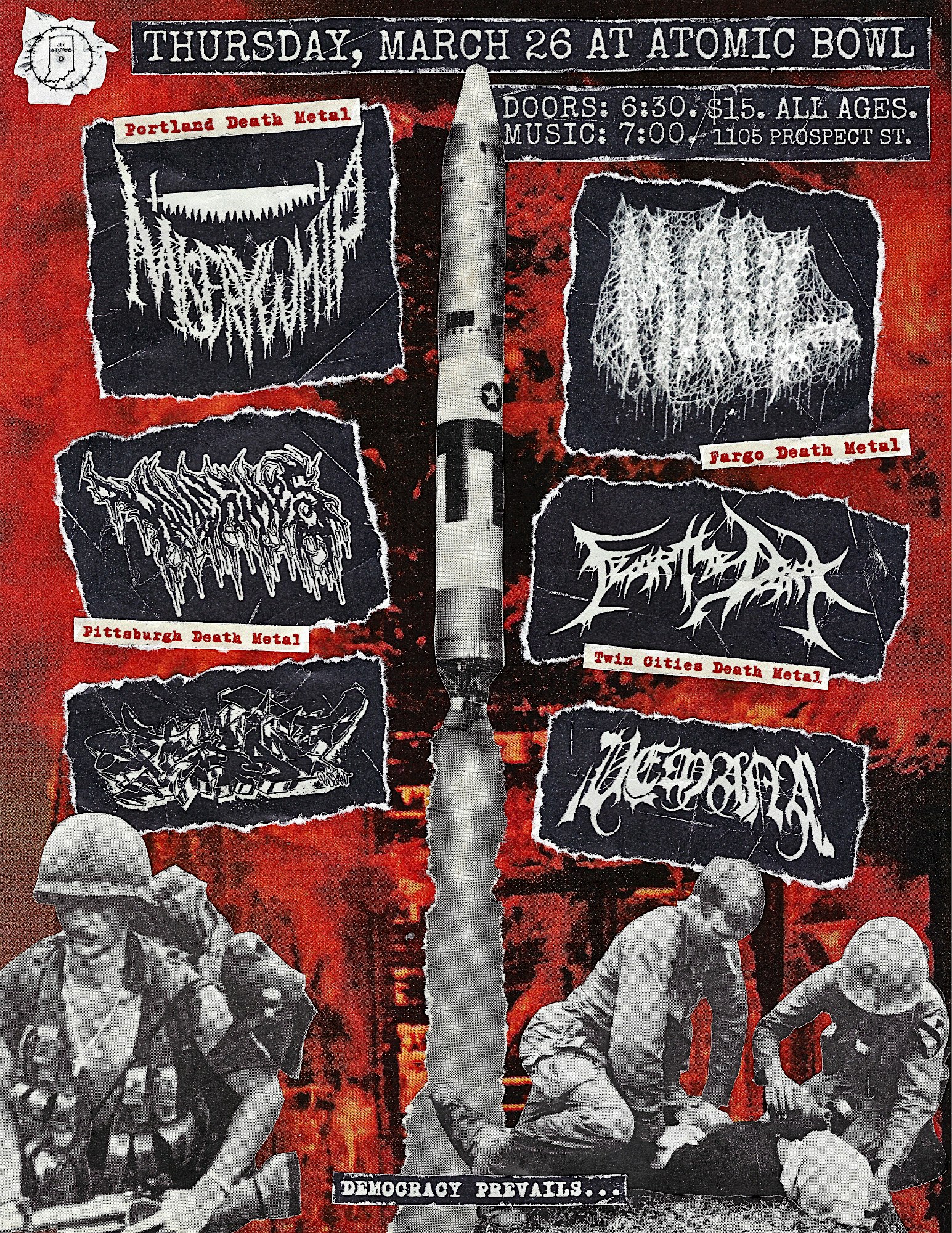 by admin27Feb Misery Whip / Maul / Windchimes / Fear The Dark + More @ Atomic Bowl at Atomic Bowl Duckpin – Indianapolis, IN Misery Whip / Maul / Windchimes / Fear The Dark + More @ Atomic Bowl at Atomic Bowl Duckpin – Indianapolis, IN 1 1 people viewed this event. A GRIM DISPLAY OF FEROCITY TO MARK THE START OF SPRING. DEATH METAL IS BACK AT ATOMIC BOWL WITH AN ABSURD LINEUP. Tickets-RSVP Link Date And Time Thursday, March 26th, 2026 06:00 PM (PST) Venue Atomic Bowl Duckpin Location 1105 Prospect Street, Indianapolis, IN 46203 Event Types Concert or PerformanceMusic Event Category IndianaIndianapolis Share With Friends Facebook Twitter Linkedin Xing Pinterest Share This Post:
