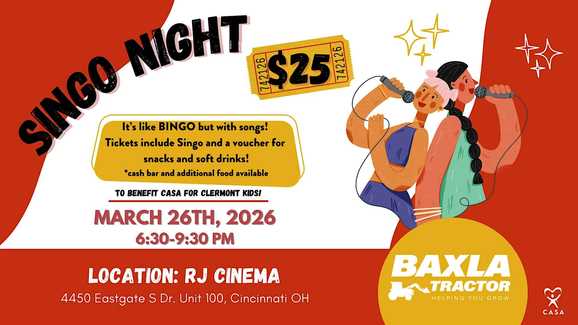 by admin14Feb Singo Night at RJ Cinema at RJ Cinema Distillery & Taproom – Cincinnati, OH Singo Night at RJ Cinema at RJ Cinema Distillery & Taproom – Cincinnati, OH 2 2 people viewed this event. It’s like BINGO-only SONGS! Tickets-RSVP Link Date And Time Thursday, March 26th, 2026 10:00 PM (PST) Venue RJ Cinema Distillery & Taproom Location 4450 Eastgate South Drive, Cincinnati, OH 45245 Event Types Food & Drink Event Category CincinnatiOhio Share With Friends Facebook Twitter Linkedin Xing Pinterest Share This Post: