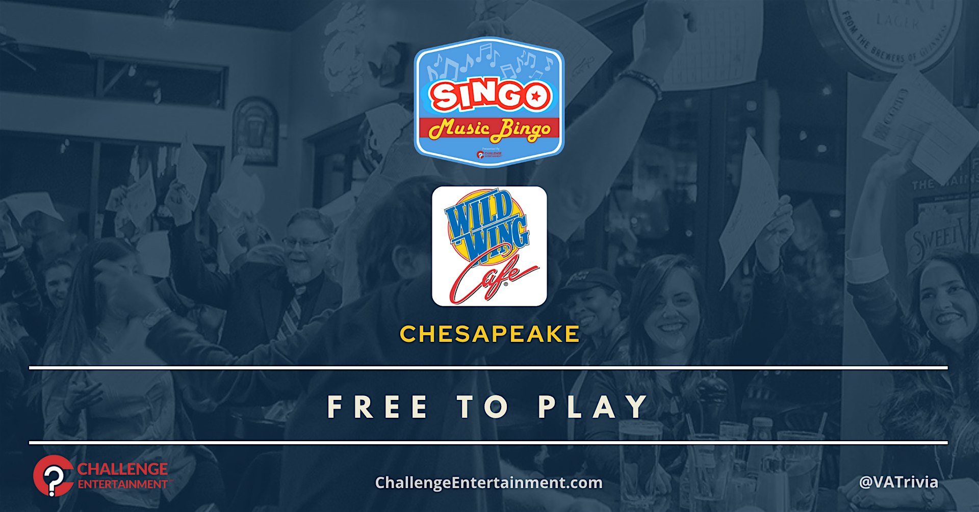 Weekly SINGO Music Bingo at Wild Wing Cafe – Chesapeake at Wild Wing Cafe – Chesapeake, VA Weekly SINGO Music Bingo at Wild Wing Cafe – Chesapeake at Wild Wing Cafe – Chesapeake, VA 2 2 people viewed this event. SINGO Music Bingo – Wild Wing Cafe – Chesapeake – Thurs 7PM Tickets-RSVP Link Register for event Date And Time Thursday, March 26th, 2026 @ 07:00 PM Location 1437 Sam's Drive, Chesapeake, VA 23320 Event Types Game or CompetitionMusic Event Category NorfolkVirginia Share With Friends Facebook Twitter Linkedin Xing Pinterest