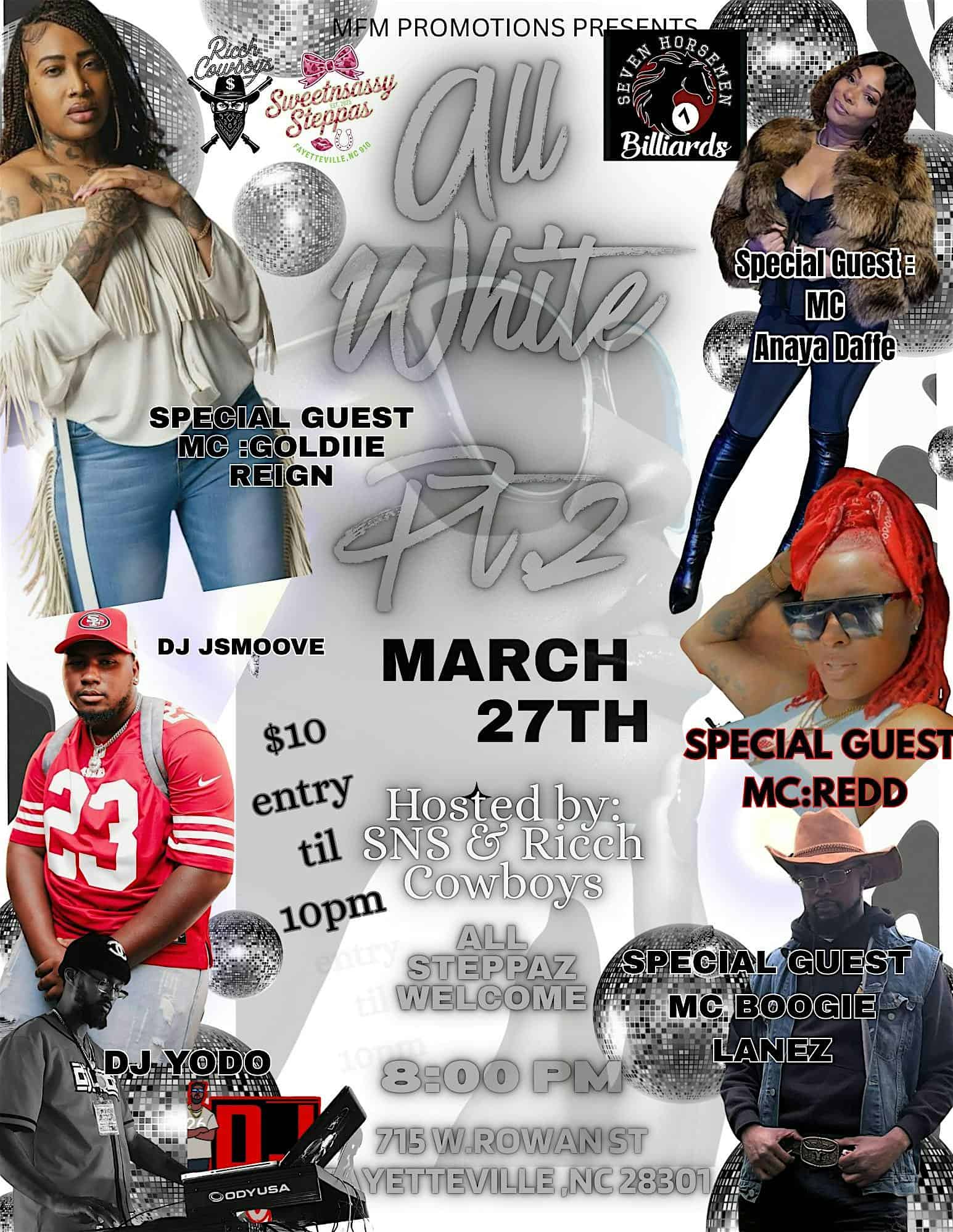 by admin23Feb All White Steppaz Affair pt2. at 715 W Rowan St – Fayetteville, NC All White Steppaz Affair pt2. at 715 W Rowan St – Fayetteville, NC 2 2 people viewed this event. All White Steppaz Affair! Pt.2! Tickets-RSVP Link Date And Time Friday, March 27th, 2026 08:00 PM (PST) Venue 715 W Rowan St Location 715 West Rowan Street, Fayetteville, NC 28301 Event Types Party or Social GatheringPerforming & Visual Arts Event Category North Carolina Share With Friends Facebook Twitter Linkedin Xing Pinterest Share This Post:
