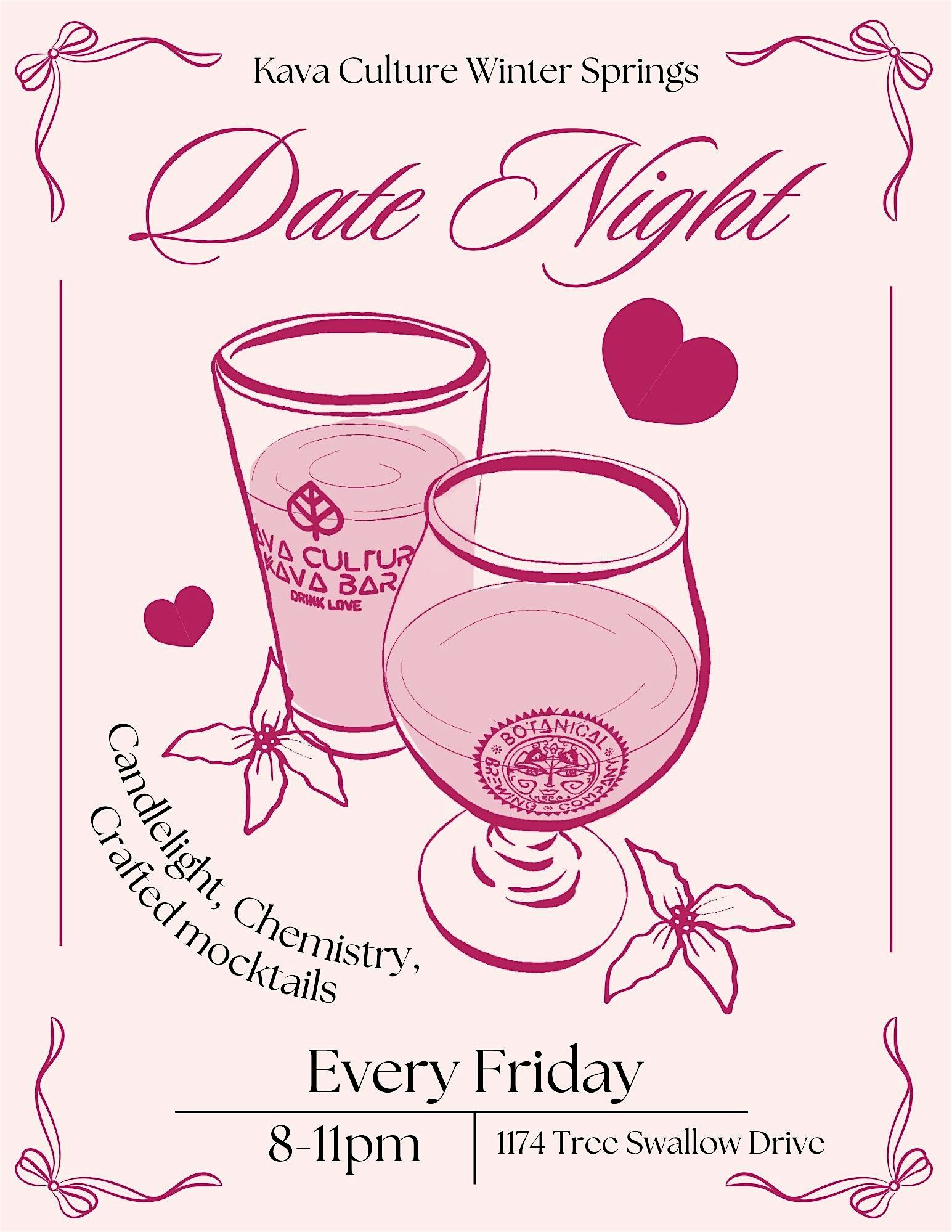 by admin27Feb Date Night at Kava Culture Winter Springs – Winter Springs, FL Date Night at Kava Culture Winter Springs – Winter Springs, FL 1 1 people viewed this event. Join us for romantic date nights every Friday in February at Kava Culture Winter Springs!! Tickets-RSVP Link Date And Time Friday, March 27th, 2026 08:00 PM (PST) Venue Kava Culture Winter Springs Location 1174 Tree Swallow Drive, Winter Springs, FL 32708 Event Types Food & DrinkParty or Social Gathering Event Category Florida Share With Friends Facebook Twitter Linkedin Xing Pinterest Share This Post: