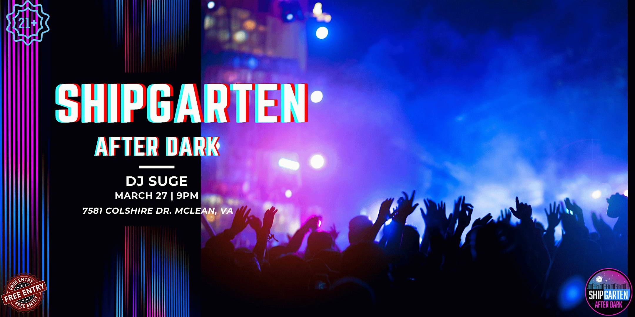 by admin24Feb DJ Suge for Shipgarten After Dark at 7581 Colshire Dr – Tysons, VA DJ Suge for Shipgarten After Dark at 7581 Colshire Dr – Tysons, VA 2 2 people viewed this event. Shipgarten After Dark – 21+ Night Featuring a Special Guest DJ Tickets-RSVP Link Date And Time Friday, March 27th, 2026 09:00 PM (PST) Venue 7581 Colshire Dr Location 7581 Colshire Drive, Tysons, VA 22102 Event Types Concert or PerformanceMusic Event Category Virginia Share With Friends Facebook Twitter Linkedin Xing Pinterest Share This Post: