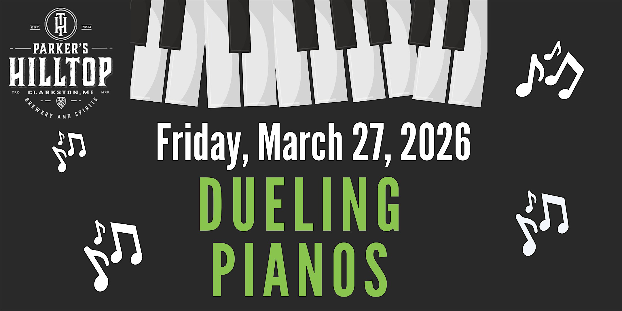 by admin27Feb “DUELING PIANOS” DINNER & A SHOW at Parker’s Hilltop Brewery – Clarkston, MI “DUELING PIANOS” DINNER & A SHOW at Parker’s Hilltop Brewery – Clarkston, MI 1 1 people viewed this event. JOIN US FOR DINNER AND A SHOW! Tickets-RSVP Link Date And Time Friday, March 27th, 2026 06:00 PM (PST) Venue Parker's Hilltop Brewery Location 6110 Dixie Highway, Clarkston, MI 48346 Event Types Concert or PerformanceFood & Drink Event Category Michigan Share With Friends Facebook Twitter Linkedin Xing Pinterest Share This Post: