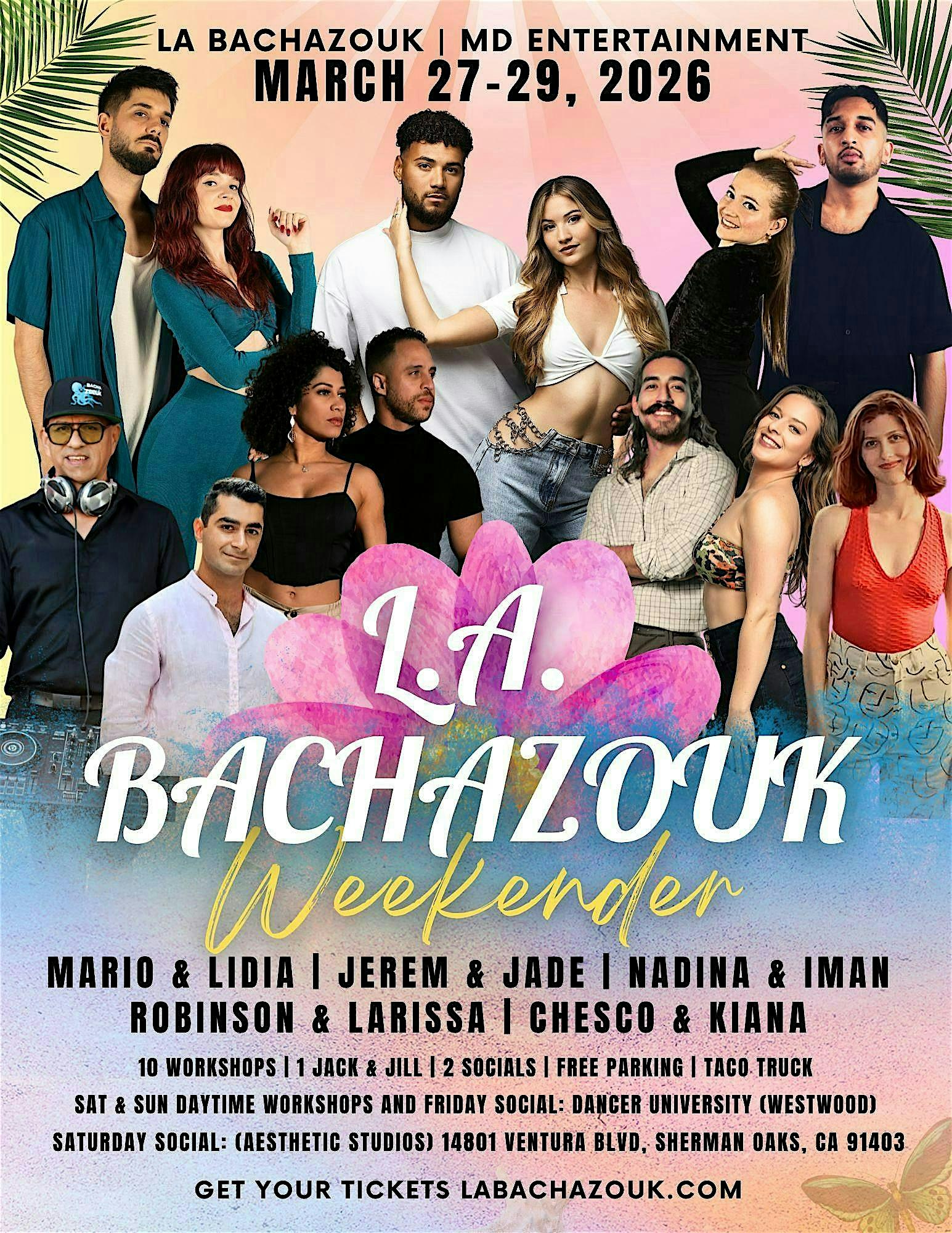 by admin22Feb LA BACHAZOUK WEEKENDER 2026: Spring Break Edition! ~ MARCH 27-29TH! at Dancer University – Los Angeles, CA LA BACHAZOUK WEEKENDER 2026: Spring Break Edition! ~ MARCH 27-29TH! at Dancer University – Los Angeles, CA 2 2 people viewed this event. LA BACHAZOUK WEEKENDER 2026: Spring Break Edition! ~ MARCH 27-29TH! Tickets-RSVP Link Date And Time Friday, March 27th, 2026 @ 08:00 PM Location 1256 Westwood Boulevard, Los Angeles, CA 90024 Event Types Performing & Visual ArtsSpring Break Event Category CaliforniaLos Angeles Share With Friends Facebook Twitter Linkedin Xing Pinterest Share This Post: