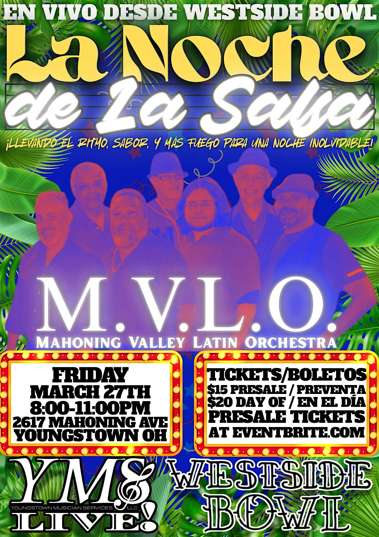 by admin24Feb La Noche De La Salsa at Westside Bowl – Youngstown, OH La Noche De La Salsa at Westside Bowl – Youngstown, OH 2 2 people viewed this event. Bringing the rhythm, flavor, and more fire for an unforgettable night at the Westside Bowl! Tickets-RSVP Link Date And Time Friday, March 27th, 2026 08:00 PM (PST) Venue Westside Bowl Location 2617 Mahoning Avenue, Youngstown, OH 44509 Event Types Concert or PerformanceMusic Event Category Ohio Share With Friends Facebook Twitter Linkedin Xing Pinterest Share This Post: