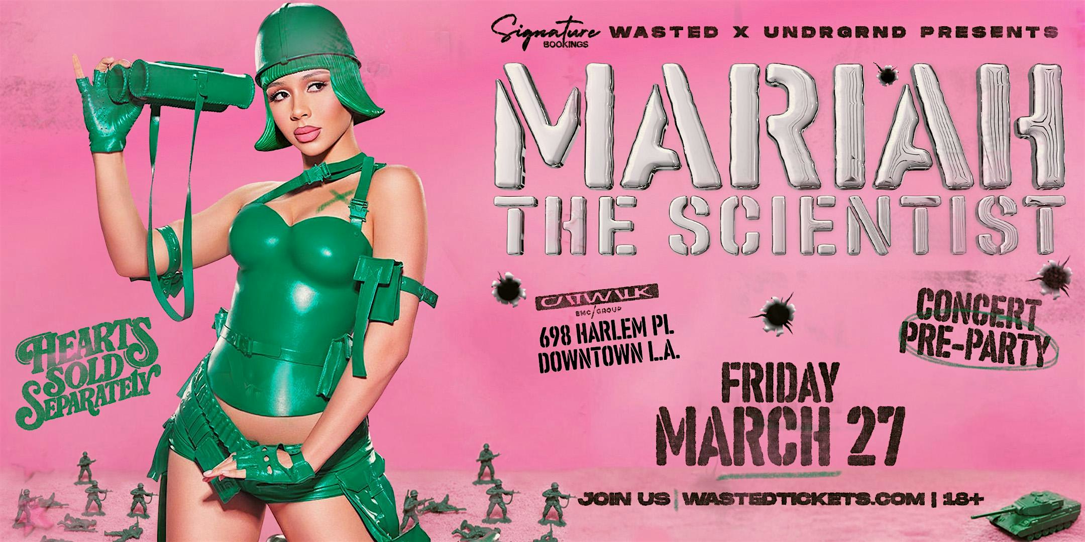 by admin24Feb Los Angeles: MARIAH THE SCIENTIST @ Catwalk Club [18+] at The Catwalk Club – Los Angeles, CA Los Angeles: MARIAH THE SCIENTIST @ Catwalk Club [18+] at The Catwalk Club – Los Angeles, CA 2 2 people viewed this event. Mariah the Scientist takes over The Catwalk Club LA for the exclusive after party Friday, March 27 during her LA run — tickets will go fast Tickets-RSVP Link Date And Time Friday, March 27th, 2026 09:00 PM (PST) Venue The Catwalk Club Location 698 Harlem Place, Los Angeles, CA 90014 Event Types Concert or PerformanceMusic Event Category CaliforniaLos Angeles Share With Friends Facebook Twitter Linkedin Xing Pinterest Share This Post:
