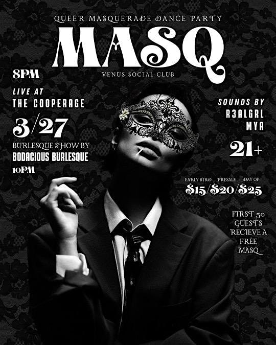 by admin23Feb MASC: QUEER MASQUERADE DANCE PARTY at The Cooperage – Milwaukee, WI MASC: QUEER MASQUERADE DANCE PARTY at The Cooperage – Milwaukee, WI 1 1 people viewed this event. JOIN US MARCH 27TH FOR OUR QUEER MASQUERADE DANCE PARTY! Tickets-RSVP Link Date And Time Friday, March 27th, 2026 08:00 PM (PST) Venue The Cooperage Location 822 South Water Street, Milwaukee, WI 53204 Event Types Community & CultureParty or Social Gathering Event Category MilwaukeeWisconsin Share With Friends Facebook Twitter Linkedin Xing Pinterest Share This Post: