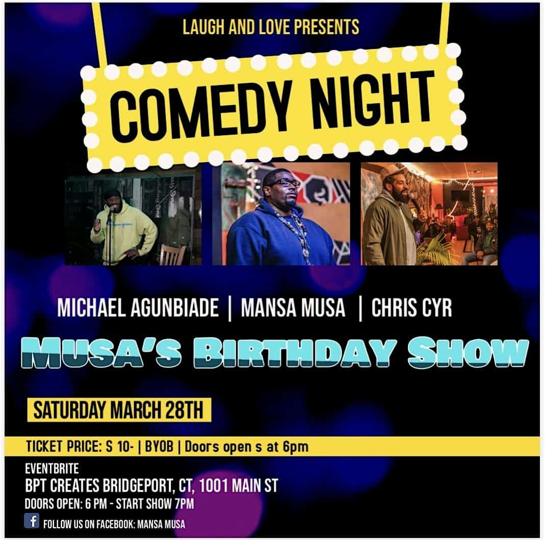 by admin23Feb Musa’s Birthday show at BPT Creates – Bridgeport, CT Musa’s Birthday show at BPT Creates – Bridgeport, CT 3 3 people viewed this event. Come party with us at Musa’s Birthday show—good vibes, cool people, and nonstop fun all night! Tickets-RSVP Link Date And Time Friday, March 27th, 2026 08:00 PM (PST) Venue BPT Creates Location 1001 Main Street, Bridgeport, CT 6608 Event Types Party or Social GatheringPerforming & Visual Arts Event Category BridgeportConnecticut Share With Friends Facebook Twitter Linkedin Xing Pinterest Share This Post: