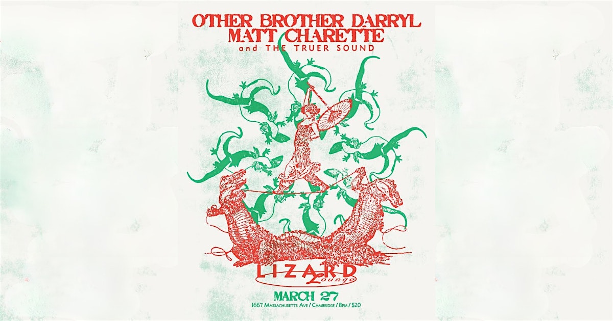 by admin24Feb Other Brother Darryl/Matt Charette and the Truer Sound at the Lizard Lounge at Lizard Lounge – Cambridge, MA Other Brother Darryl/Matt Charette and the Truer Sound at the Lizard Lounge at Lizard Lounge – Cambridge, MA 2 2 people viewed this event. Other Brother Darryl and Matt Charette and the Truer Sound live at the Lizard Lounge March 27th! Tickets-RSVP Link Date And Time Friday, March 27th, 2026 08:00 PM (PST) Venue Lizard Lounge Location 1667 Massachusetts Avenue, Cambridge, MA 2138 Event Types Concert or PerformanceMusic Event Category Massachusetts Share With Friends Facebook Twitter Linkedin Xing Pinterest Share This Post: