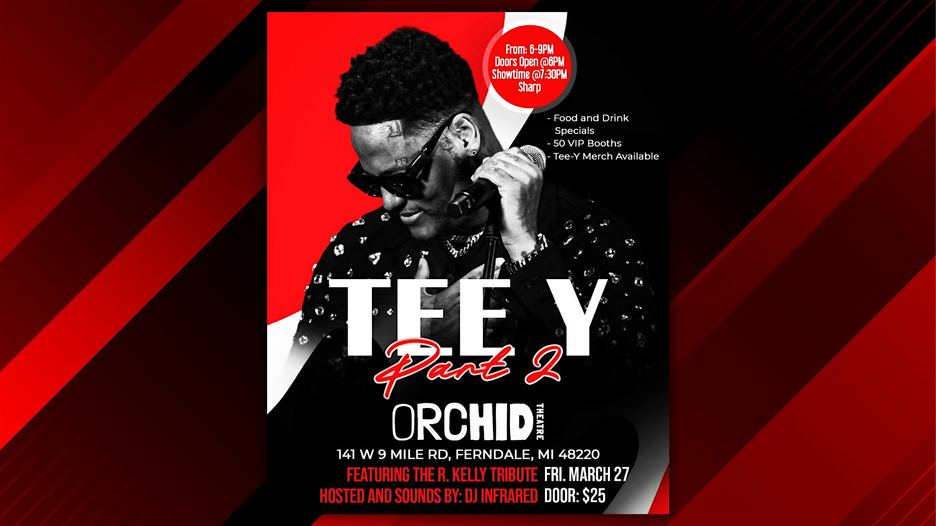 by admin13Feb Tee Y Part 2 Live at Orchid Theatre at Orchid Theatre – Ferndale, MI Tee Y Part 2 Live at Orchid Theatre at Orchid Theatre – Ferndale, MI 2 2 people viewed this event. Tee Y Part 2 Live at Orchid Theatre Tickets-RSVP Link Date And Time Friday, March 27th, 2026 10:00 PM (PST) Venue Orchid Theatre Location 141 West Nine Mile Road, Ferndale, MI 48220 Event Types MusicParty or Social Gathering Event Category DetroitMichigan Share With Friends Facebook Twitter Linkedin Xing Pinterest Share This Post: