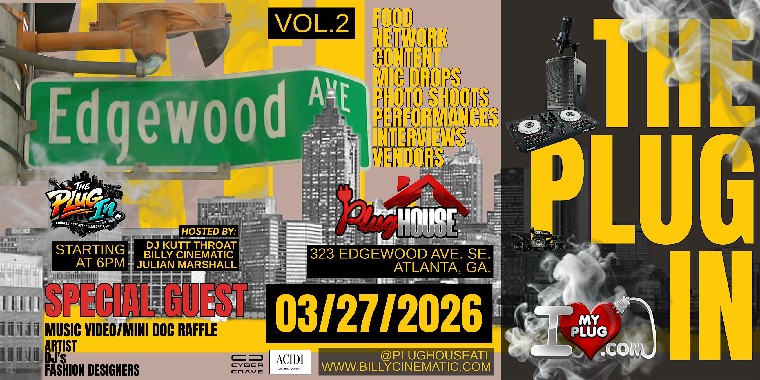by admin13Feb The Plug In: Vol.2. at 323 Edgewood Ave SE – Atlanta, GA The Plug In: Vol.2. at 323 Edgewood Ave SE – Atlanta, GA 1 1 people viewed this event. This isn’t just an event — it’s a content factory + industry mixer built for artists and creators who are serious about growth. Tickets-RSVP Link Date And Time Friday, March 27th, 2026 10:00 PM (PST) Venue 323 Edgewood Ave SE Location 323 Edgewood Avenue Southeast, Atlanta, GA 30312 Event Types Music Event Category AtlantaGeorgia Share With Friends Facebook Twitter Linkedin Xing Pinterest Share This Post: