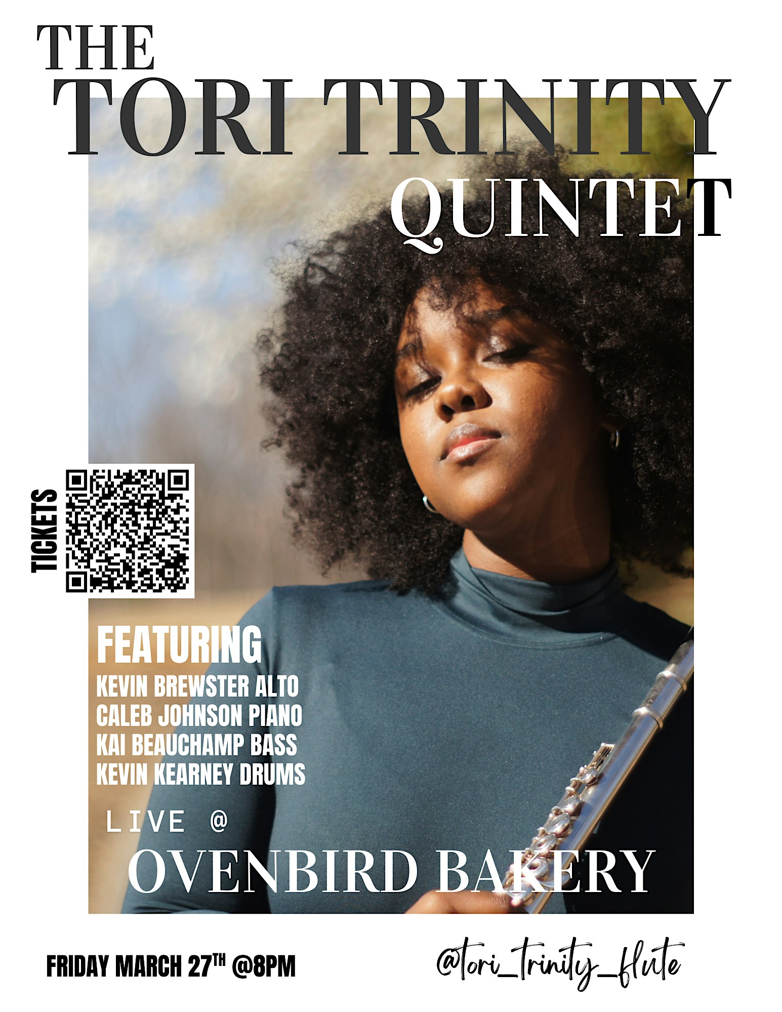 by admin24Feb The Tori Trinity Quintet at Ovenbird Bakery – Baltimore, MD The Tori Trinity Quintet at Ovenbird Bakery – Baltimore, MD 2 2 people viewed this event. Tori Trinity and her 5-piece band are back at Ovenbird Bakery for a soulful night of live jazz, great vibes, and delicious cocktails. Tickets-RSVP Link Date And Time Friday, March 27th, 2026 08:00 PM (PST) Venue Ovenbird Bakery Location 3925 Gough Street, Baltimore, MD 21224 Event Types Concert or PerformanceMusic Event Category BaltimoreMaryland Share With Friends Facebook Twitter Linkedin Xing Pinterest Share This Post: