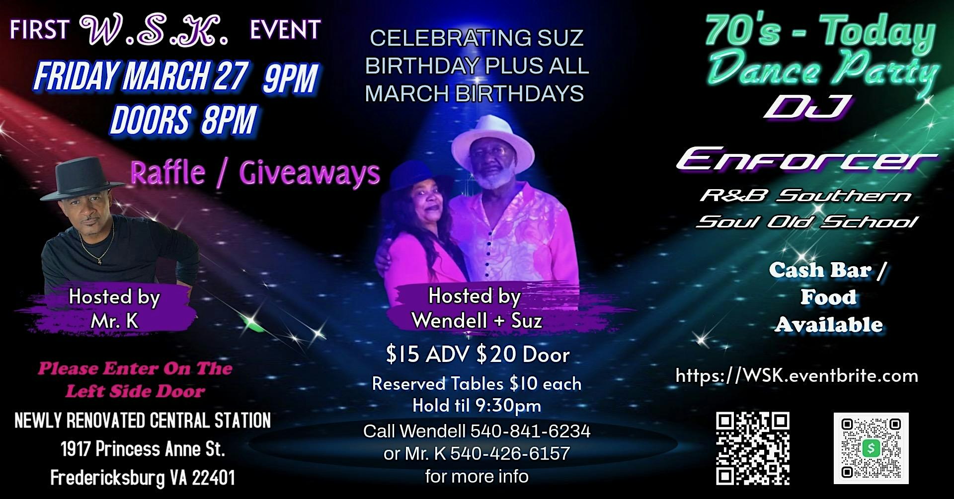 W.S.K. presents 70s, 80s,90s Old school Party at the new Central Station at Central Station – Fredericksburg, VA W.S.K. presents 70s, 80s,90s Old school Party at the new Central Station at Central Station – Fredericksburg, VA 3 3 people viewed this event. Dance the night away with March 27th at Central Station in Fredericksburg, VA. jamming to the old school flow. Doors open at 8pm Tickets-RSVP Link Register for event Date And Time Friday, March 27th, 2026 @ 08:00 PM Location 1917 Princess Anne Street, Fredericksburg, VA 22401 Event Types Appearance or SigningMusic Event Category Virginia Share With Friends Facebook Twitter Linkedin Xing Pinterest