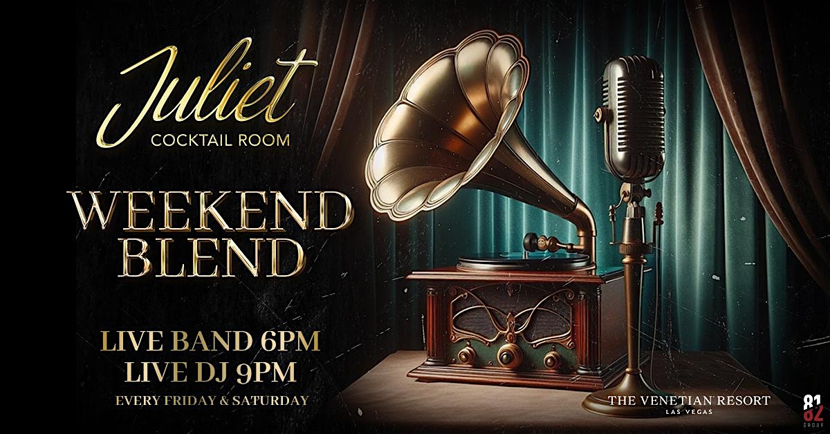 by admin24Feb Weekend Blend at Juliet Cocktail Room – Las Vegas, NV Weekend Blend at Juliet Cocktail Room – Las Vegas, NV 2 2 people viewed this event. Weekend Blend at Juliet Cocktail Room, where live bands and DJs come together to create the perfect mix of music. Tickets-RSVP Link Date And Time Friday, March 27th, 2026 06:00 PM (PST) Venue Juliet Cocktail Room Location 3355 South Las Vegas Boulevard, Las Vegas, NV 89109 Event Types MusicParty or Social Gathering Event Category Las VegasNevada Share With Friends Facebook Twitter Linkedin Xing Pinterest Share This Post: