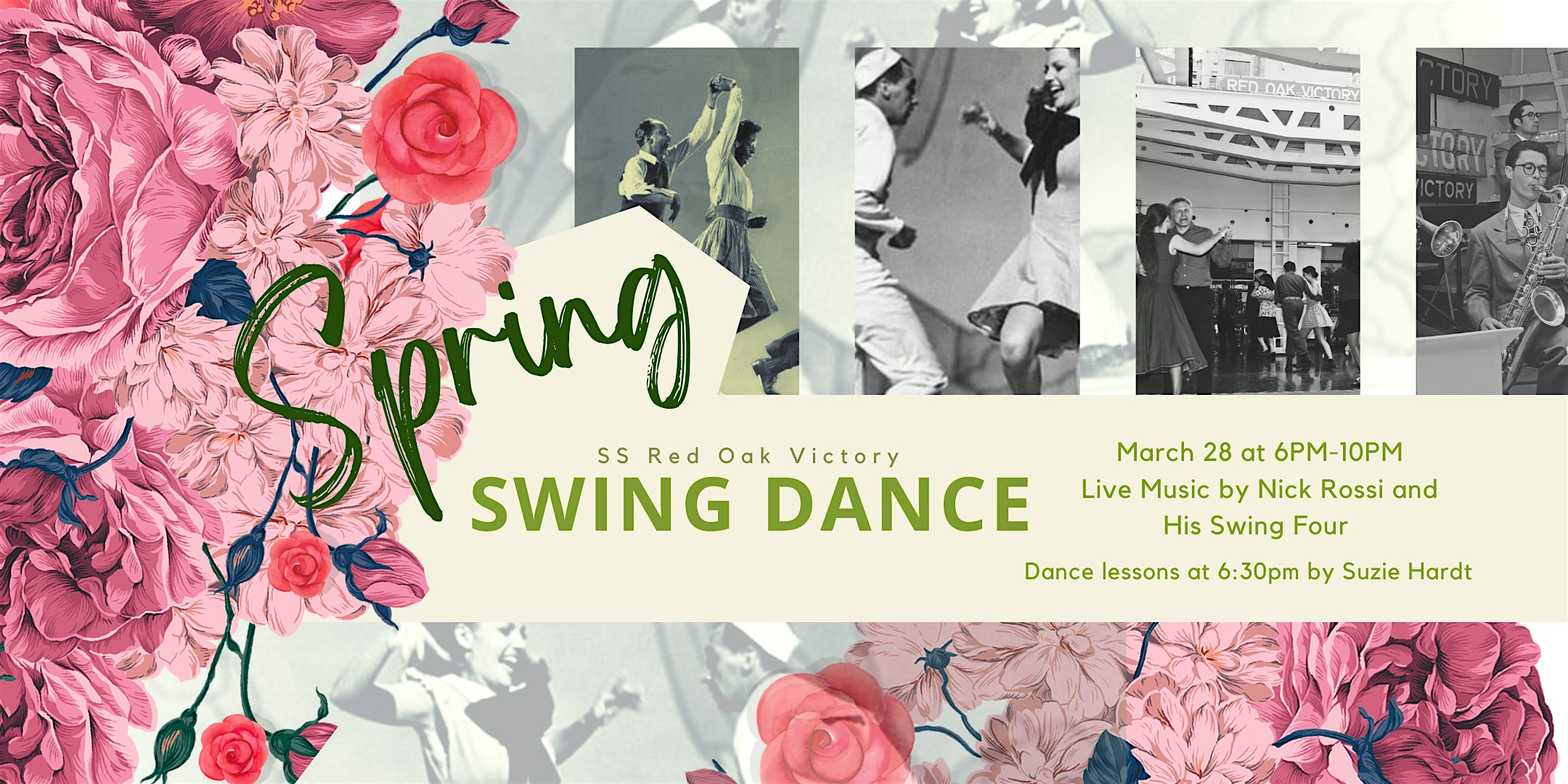 by admin27Feb 2026 Spring Swing Dance on Red Oak Victory at SS Red Oak Victory – Point Richmond, CA 2026 Spring Swing Dance on Red Oak Victory at SS Red Oak Victory – Point Richmond, CA 1 1 people viewed this event. Our Spring Swing is back for 2026! Come take a swing dance lesson and then dance to Nick Rossi and His Swing Four all night long! Tickets-RSVP Link Date And Time Saturday, March 28th, 2026 @ 06:00 PM Location 1337 Canal Boulevard, Point Richmond, CA 94804 Event Types MusicParty or Social Gathering Event Category California Share With Friends Facebook Twitter Linkedin Xing Pinterest Share This Post: