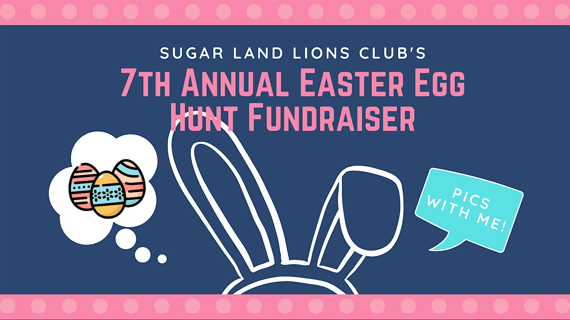 by admin23Feb 7th Annual Easter Egg Hunt for All at Eldridge Park – Sugar Land, TX 7th Annual Easter Egg Hunt for All at Eldridge Park – Sugar Land, TX 1 1 people viewed this event. The Easter Bunny and his Sugar Land Lions crew will be stopping by Eldredge Park with food, fun and prize-filled eggs! Tickets-RSVP Link Date And Time Saturday, March 28th, 2026 11:00 AM (PST) Venue Eldridge Park Location 2511 Eldridge Road, Sugar Land, TX 77478 Event Types Charity & CausesParty or Social Gathering Event Category HoustonTexas Share With Friends Facebook Twitter Linkedin Xing Pinterest Share This Post: