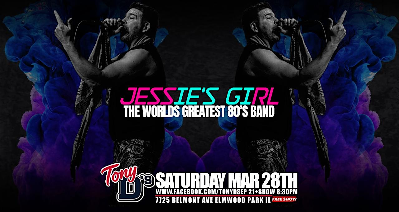by admin24Feb 80’s Night w/ Jessie’s Girl at Tony D’s at 7725 W Belmont Ave – Elmwood Park, IL 80’s Night w/ Jessie’s Girl at Tony D’s at 7725 W Belmont Ave – Elmwood Park, IL 1 1 people viewed this event. Get ready to party like it’s the ’80s with Jessie’s Girl at Tony D’s—retro vibes and killer tunes! Tickets-RSVP Link Date And Time Saturday, March 28th, 2026 08:00 PM (PST) Venue 7725 W Belmont Ave Location 7725 West Belmont Avenue, Elmwood Park, IL 60707 Event Types MusicParty or Social Gathering Event Category Illinois Share With Friends Facebook Twitter Linkedin Xing Pinterest Share This Post: