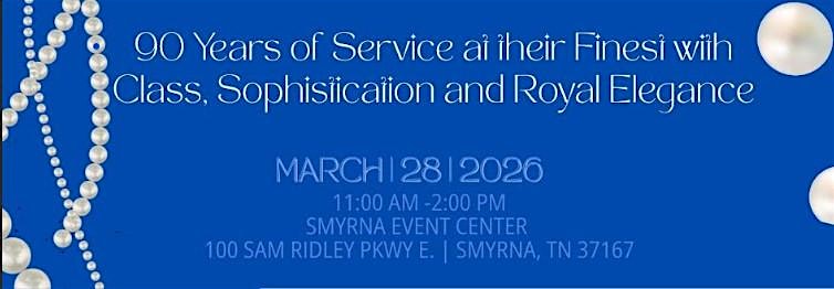 by admin22Feb 90th Celebration of Service – Pi Zeta Chapter at Smyrna Event Center – Smyrna, TN 90th Celebration of Service – Pi Zeta Chapter at Smyrna Event Center – Smyrna, TN 1 1 people viewed this event. Join the Pi Zeta Chapter as we celebrate 90 years of Scholarship, Service, Sisterhood and Finer Womanhood in the Nashville community. Tickets-RSVP Link Date And Time Saturday, March 28th, 2026 @ 04:00 PM Location 100 Sam Ridley Parkway East, Smyrna, TN 37167 Event Types Charity & CausesParty or Social Gathering Event Category Tennessee Share With Friends Facebook Twitter Linkedin Xing Pinterest Share This Post: