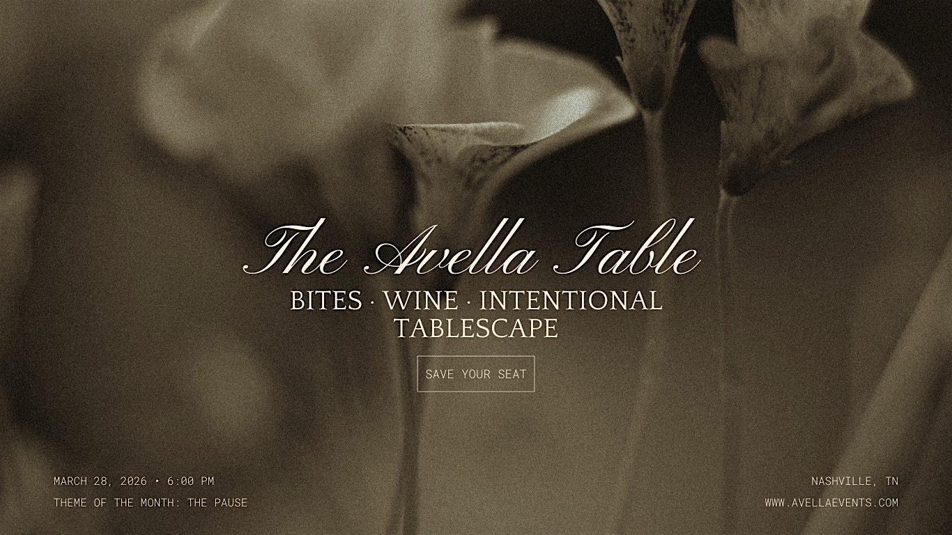 by admin24Feb Avella Table: The Pause at Tempo by Hilton Nashville Downtown – Nashville, TN Avella Table: The Pause at Tempo by Hilton Nashville Downtown – Nashville, TN 2 2 people viewed this event. A themed dinner with curated bites, wine, and a beautifully designed table — changing every month. Tickets-RSVP Link Date And Time Saturday, March 28th, 2026 06:00 PM (PST) Venue Tempo by Hilton Nashville Downtown Location 127 Rosa L Parks Boulevard, Nashville, TN 37203 Event Types Food & Drink Event Category NashvilleTennessee Share With Friends Facebook Twitter Linkedin Xing Pinterest Share This Post: