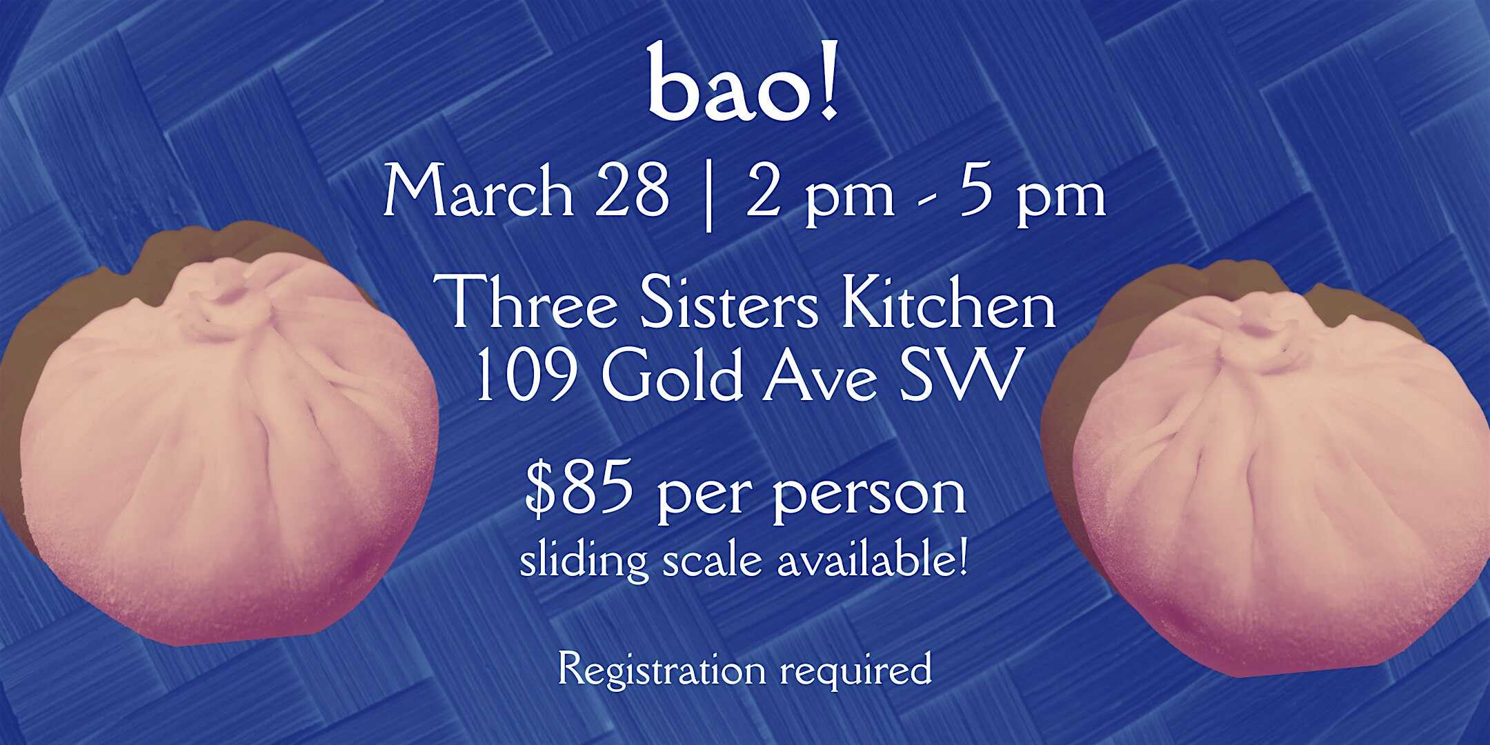 by admin14Feb Bao with Lily | March 28 at Three Sisters Kitchen, Gold Avenue Southwest, Albuquerque, NM, USA – Albuquerque, NM Bao with Lily | March 28 at Three Sisters Kitchen, Gold Avenue Southwest, Albuquerque, NM, USA – Albuquerque, NM 1 1 people viewed this event. Learn to make fluffy and juicy Chinese steamed buns! Tickets-RSVP Link Date And Time Saturday, March 28th, 2026 08:00 PM (PST) Venue Three Sisters Kitchen, Gold Avenue Southwest, Albuquerque, NM, USA Location 109 Gold Avenue Southwest, Albuquerque, NM 87102 Event Types Food & Drink Event Category AlbuquerqueNew Mexico Share With Friends Facebook Twitter Linkedin Xing Pinterest Share This Post: