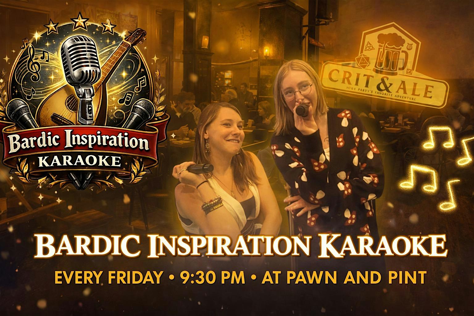 Bardic Inspiration Karaoke at Pawn and Pint – Kansas City, MO Bardic Inspiration Karaoke at Pawn and Pint – Kansas City, MO 4 4 people viewed this event. Warm up those vocal cords and ready your best tavern anthem. Tickets-RSVP Link Register for event Date And Time Saturday, March 28th, 2026 @ 09:00 PM Location 613 Walnut Street, Kansas City, MO 64106 Event Types Appearance or SigningMusic Event Category Kansas CityMissouri Share With Friends Facebook Twitter Linkedin Xing Pinterest
