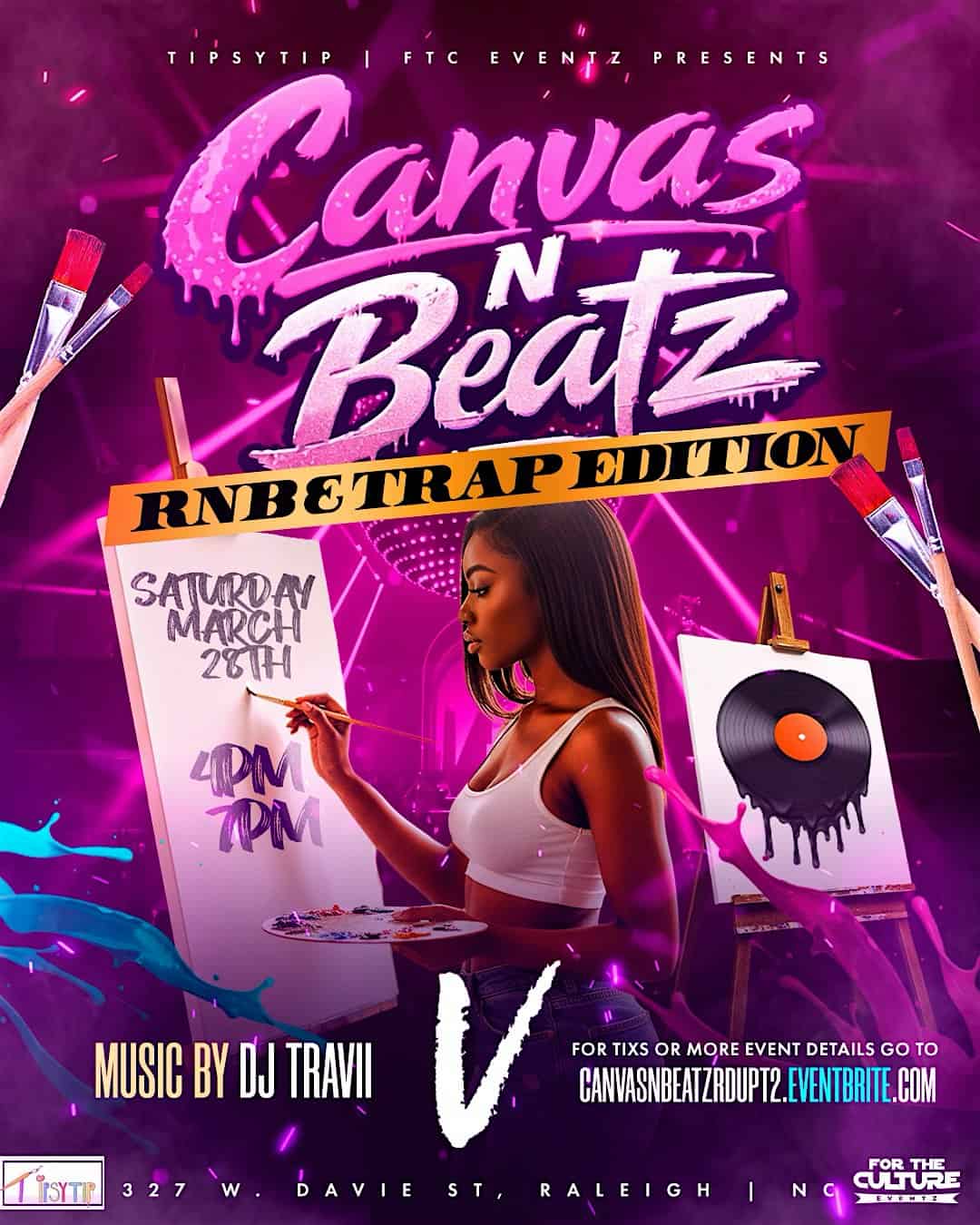by admin23Feb Canvas N Beatz::RnB and Trap Edition at The Venue Raleigh – Raleigh, NC Canvas N Beatz::RnB and Trap Edition at The Venue Raleigh – Raleigh, NC 2 2 people viewed this event. Get ready to vibe with the best RnB and Trap music while painting Tickets-RSVP Link Date And Time Saturday, March 28th, 2026 04:00 PM (PST) Venue The Venue Raleigh Location 327 West Davie Street, Raleigh, NC 27601 Event Types MusicParty or Social Gathering Event Category North CarolinaRaleigh Share With Friends Facebook Twitter Linkedin Xing Pinterest Share This Post: