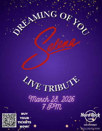 Celebrate the Queen of Tejano Music with a LIVE Tribute show at Hard Rock Cafe San Antonio! Balia conmigo to Selenas classic hits as our Live Tribute artist showcases iconic dances, outfits and the charisma we all know and love! Dont forget to check out our St. Pattys Themed Pop-Up Bar and Cigar Lounge, The Lucky Clover, located at The Balcony! Fall in love with our exclusive cocktails, immersive decor, and music from our live DJ that will have you moving all night! Saturday, March 28, 20267:00 PM – 9:00 PMDoors 6:00 PMFood, beverage, and retail for purchase.Make your reservation to dine before/after the show.Buy Your Tickets Now!General Admission $15++Seating First Come, First Serve Basis. Table not gauranteed. Checkout pricing to include taxes and fees.$65 Additional Front Row VIP Table for (4) – Add-On to General Admission tickets. Guarantees front row table. Checkout Pricing to include taxes and fees.$50 Additional for second row VIP Table for (4) – Add-On to General Admission Tickets. Checkout pricing to include taxes and fees.*MUST Purchase General Admission Tickets to Add-On TableTickets Available for All Ages.All sales are final.++ Pricing subject to 8.25% sales tax and 20% admin fee.