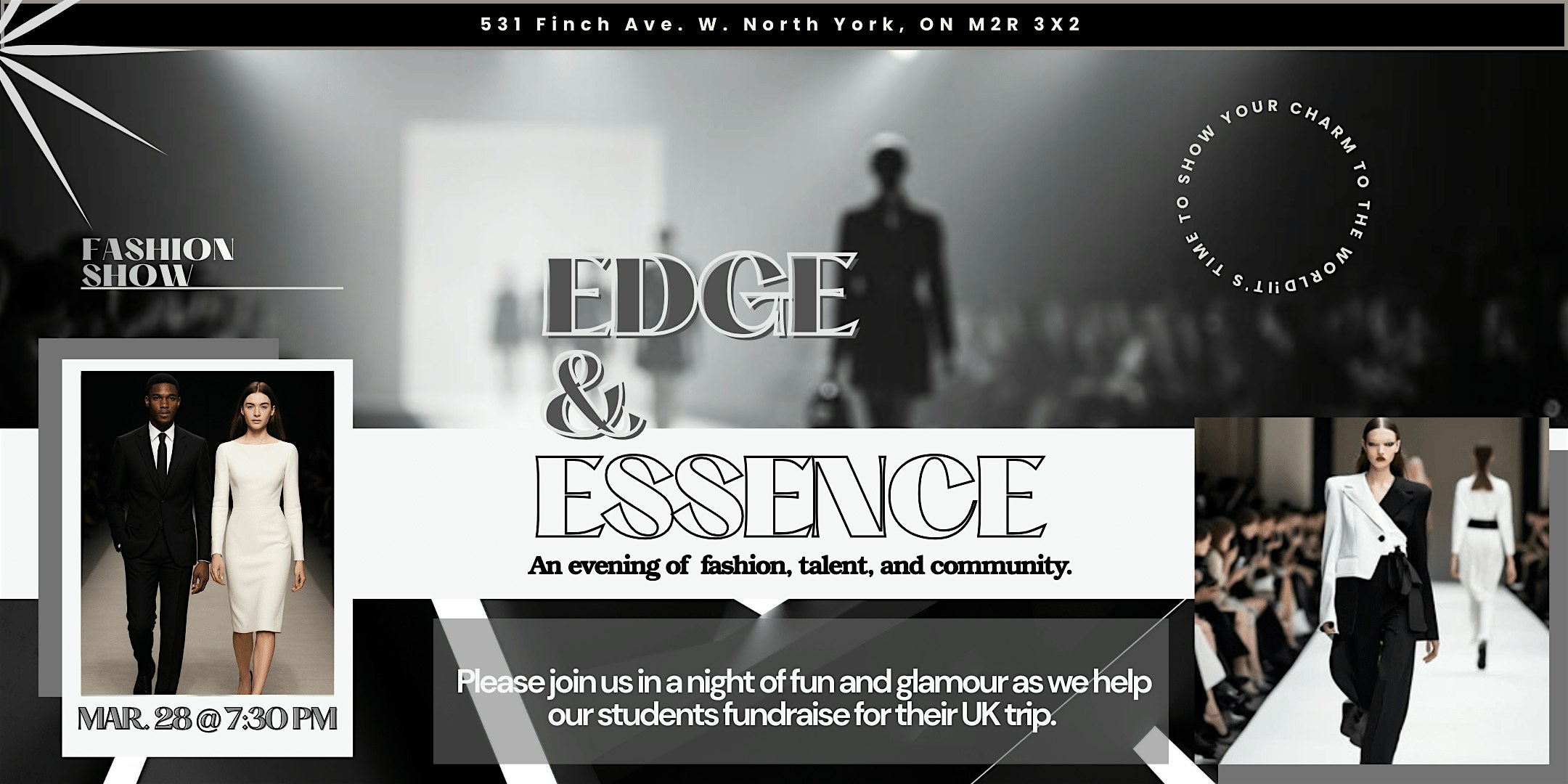 by admin13Feb Edge & Essence at Crawford Adventist Academy – Toronto, Canada Edge & Essence at Crawford Adventist Academy – Toronto, Canada 1 1 people viewed this event. Get ready to vibe with fresh styles and bold looks at the Edge & Essence Fashion Show—live and in person! Tickets-RSVP Link Date And Time Saturday, March 28th, 2026 11:00 PM (PST) Venue Crawford Adventist Academy Location 531 Finch Avenue West, Toronto, Canada M2R 3X2 Event Types Fashion & BeautyParty or Social Gathering Event Category CanadaToronto Share With Friends Facebook Twitter Linkedin Xing Pinterest Share This Post: