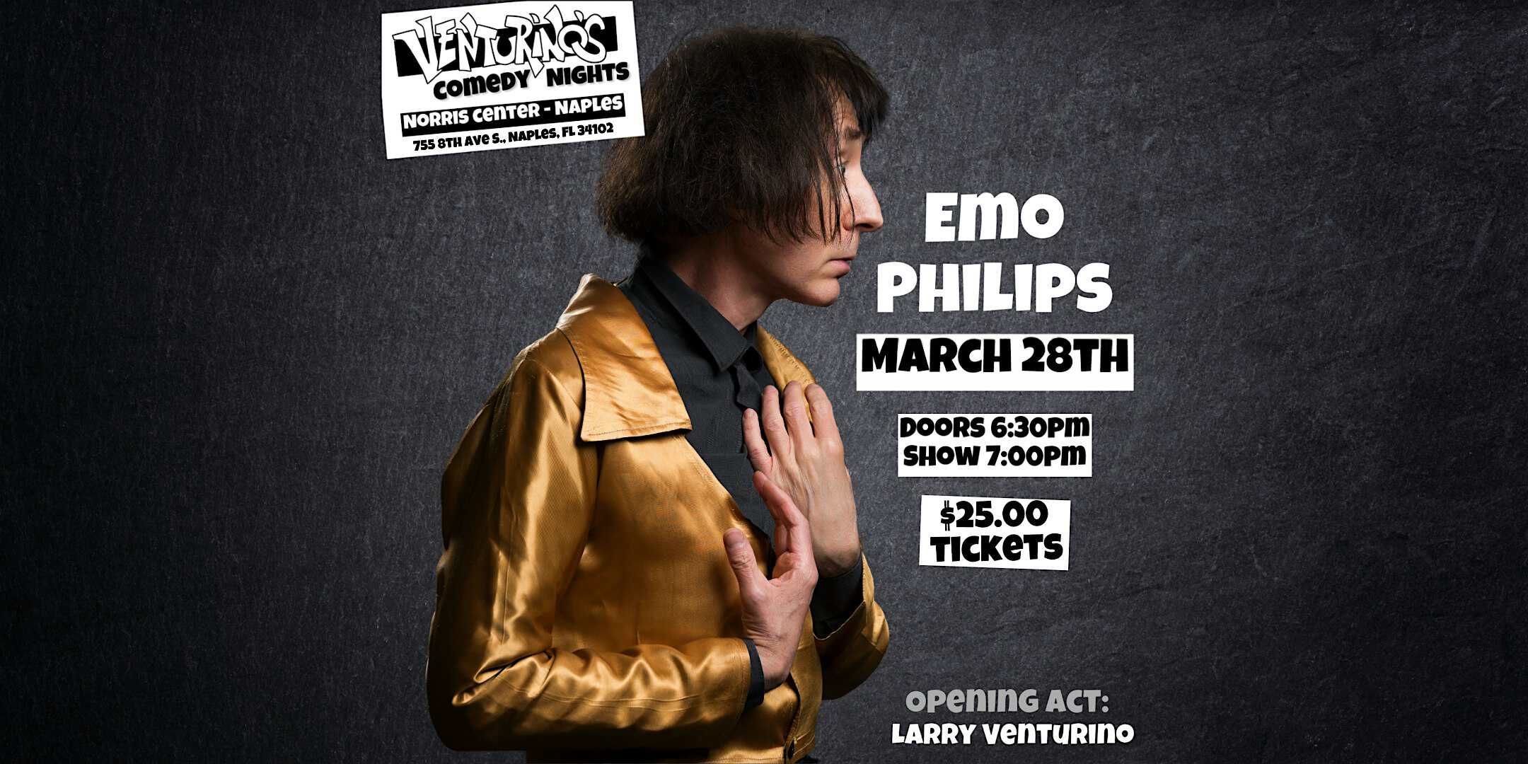 by admin14Feb Emo Philips at Norris Center – Naples, FL Emo Philips at Norris Center – Naples, FL 1 1 people viewed this event. Join Emo Philips for a night of gut-busting comedy at The Norris Center – laughter guaranteed! Tickets-RSVP Link Date And Time Saturday, March 28th, 2026 11:00 PM (PST) Venue Norris Center Location 755 8th Avenue South, Naples, FL 34102 Event Types Concert or PerformancePerforming & Visual Arts Event Category Florida Share With Friends Facebook Twitter Linkedin Xing Pinterest Share This Post:
