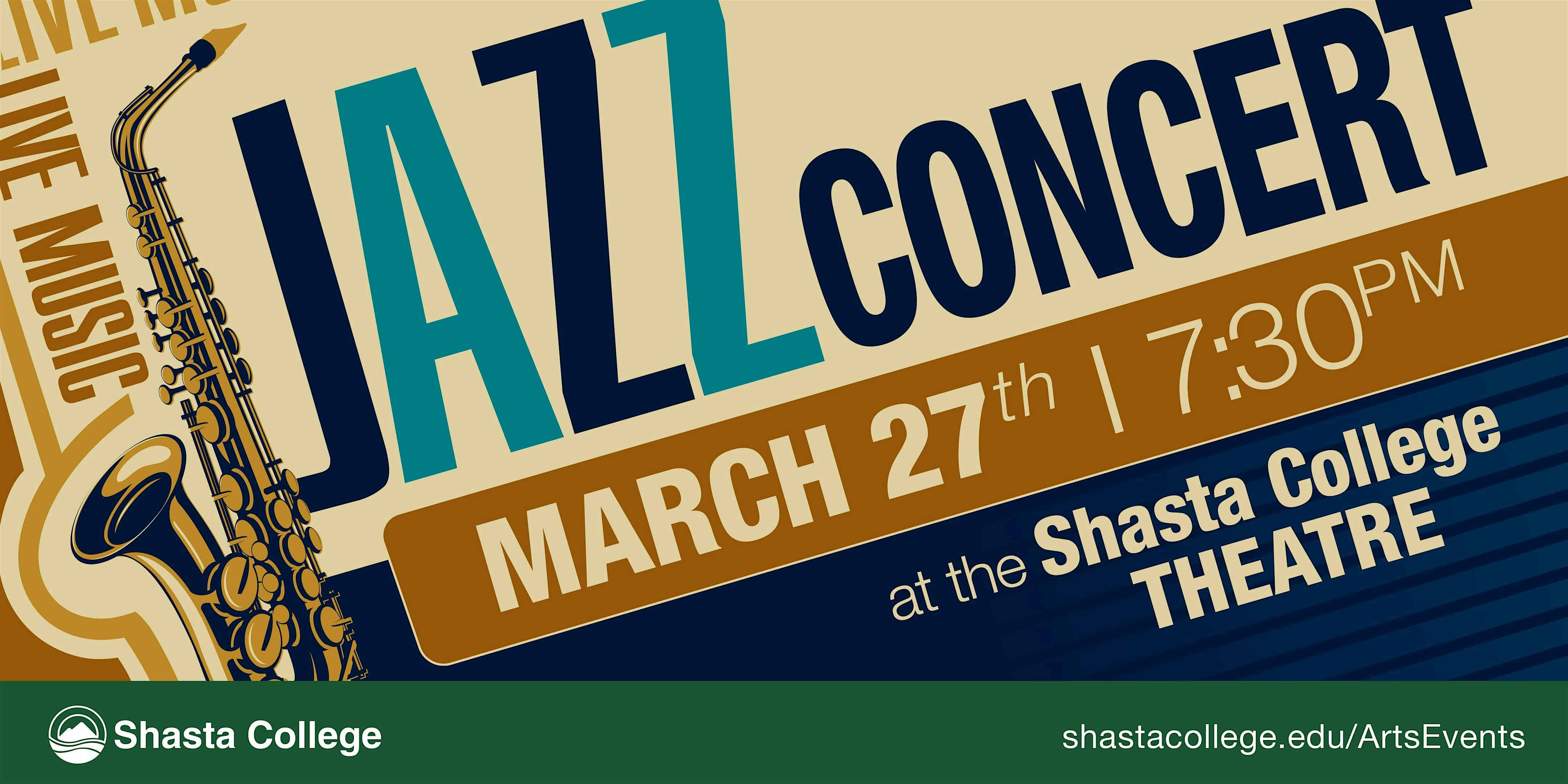 by admin14Feb Jazz at Shasta College Presents a Spring Concert at Shasta College – Redding, CA Jazz at Shasta College Presents a Spring Concert at Shasta College – Redding, CA 1 1 people viewed this event. We hope you’ll join us for the first Jazz Concert of the Spring 2026 season. Tickets-RSVP Link Date And Time Saturday, March 28th, 2026 02:00 AM (PST) Venue Shasta College Location 11555 Old Oregon Trail, Redding, CA 96003 Event Types Concert or PerformancePerforming & Visual Arts Event Category California Share With Friends Facebook Twitter Linkedin Xing Pinterest Share This Post: