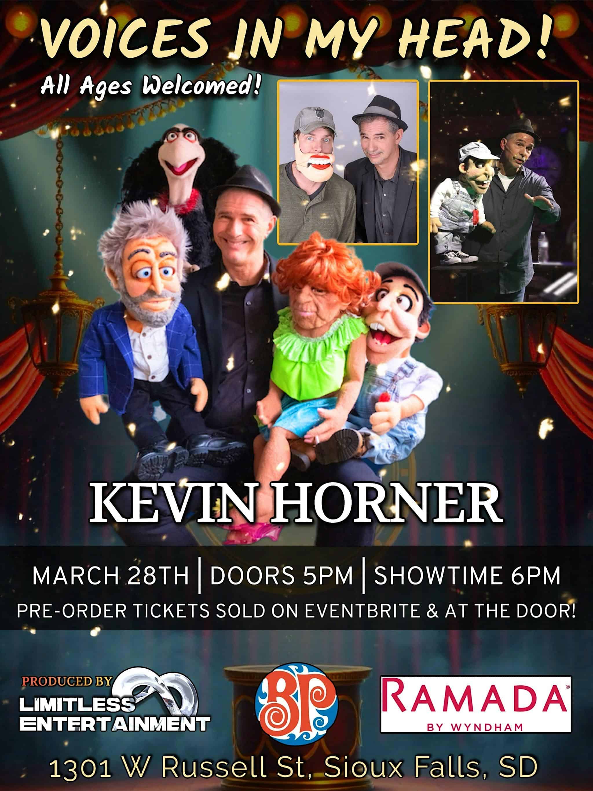 by admin14Feb Kevin Horner “ voices in my head” at Boston’s Pizza Restaurant & Sports Bar – Sioux Falls, SD Kevin Horner “ voices in my head” at Boston’s Pizza Restaurant & Sports Bar – Sioux Falls, SD 1 1 people viewed this event. Limitless entertainment presents Kevin Horner “voices in my head” tour, coming live to Sioux Falls South Dakota Tickets-RSVP Link Date And Time Saturday, March 28th, 2026 11:00 PM (PST) Venue Boston's Pizza Restaurant & Sports Bar Location 1301 West Russell Street, Sioux Falls, SD 57104 Event Types Concert or PerformancePerforming & Visual Arts Event Category South Dakota Share With Friends Facebook Twitter Linkedin Xing Pinterest Share This Post: