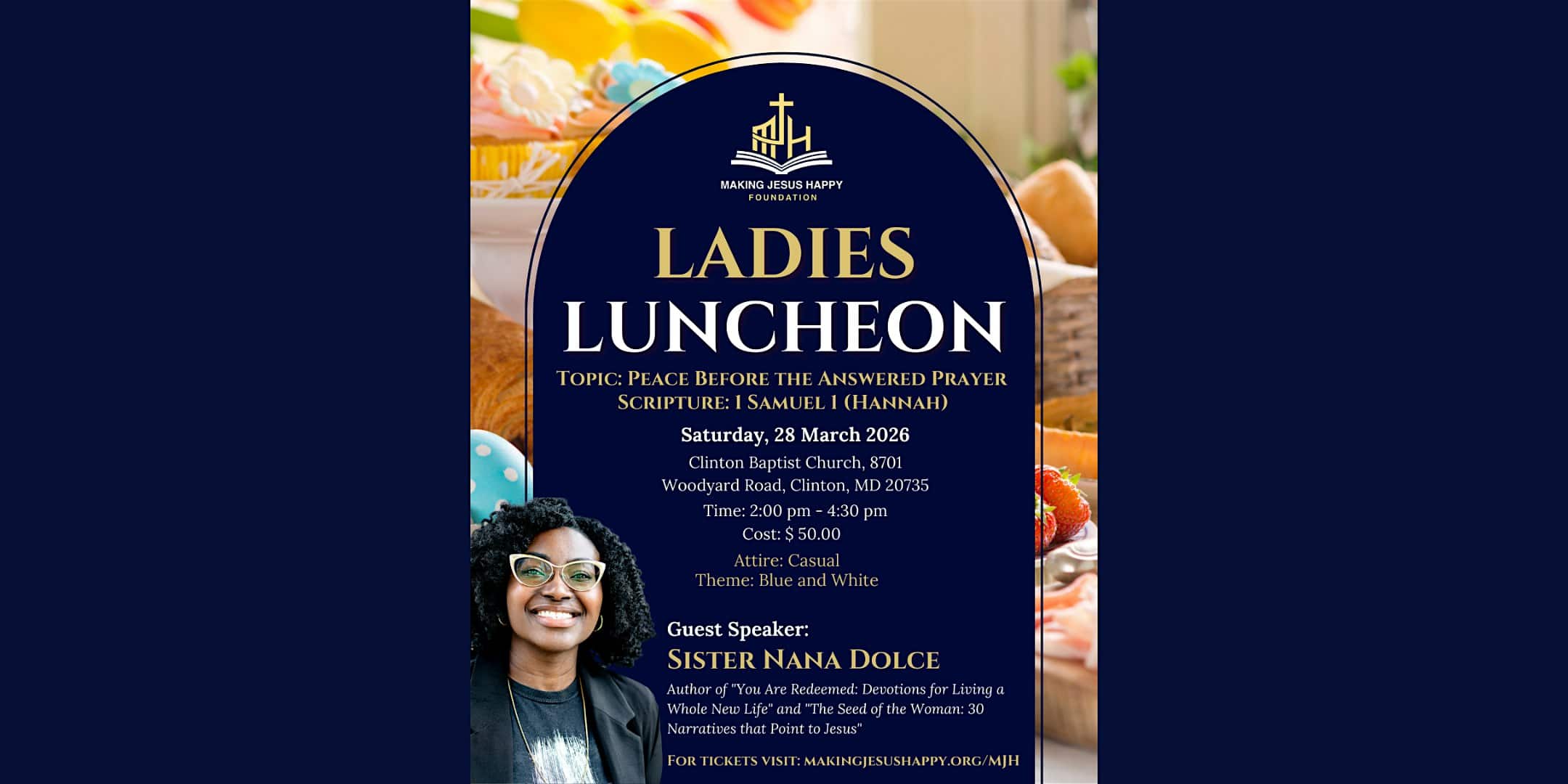 by admin14Feb Ladies Luncheon at Clinton Baptist Church – Clinton, MD Ladies Luncheon at Clinton Baptist Church – Clinton, MD 1 1 people viewed this event. Ladies, get ready to mingle, laugh, and enjoy good food at our upcoming Ladies Luncheon – it’s going to be a blast! Tickets-RSVP Link Date And Time Saturday, March 28th, 2026 06:00 PM (PST) Venue Clinton Baptist Church Location 8701 Woodyard Road, Clinton, MD 20735 Event Types Food & Drink Event Category Maryland Share With Friends Facebook Twitter Linkedin Xing Pinterest Share This Post:
