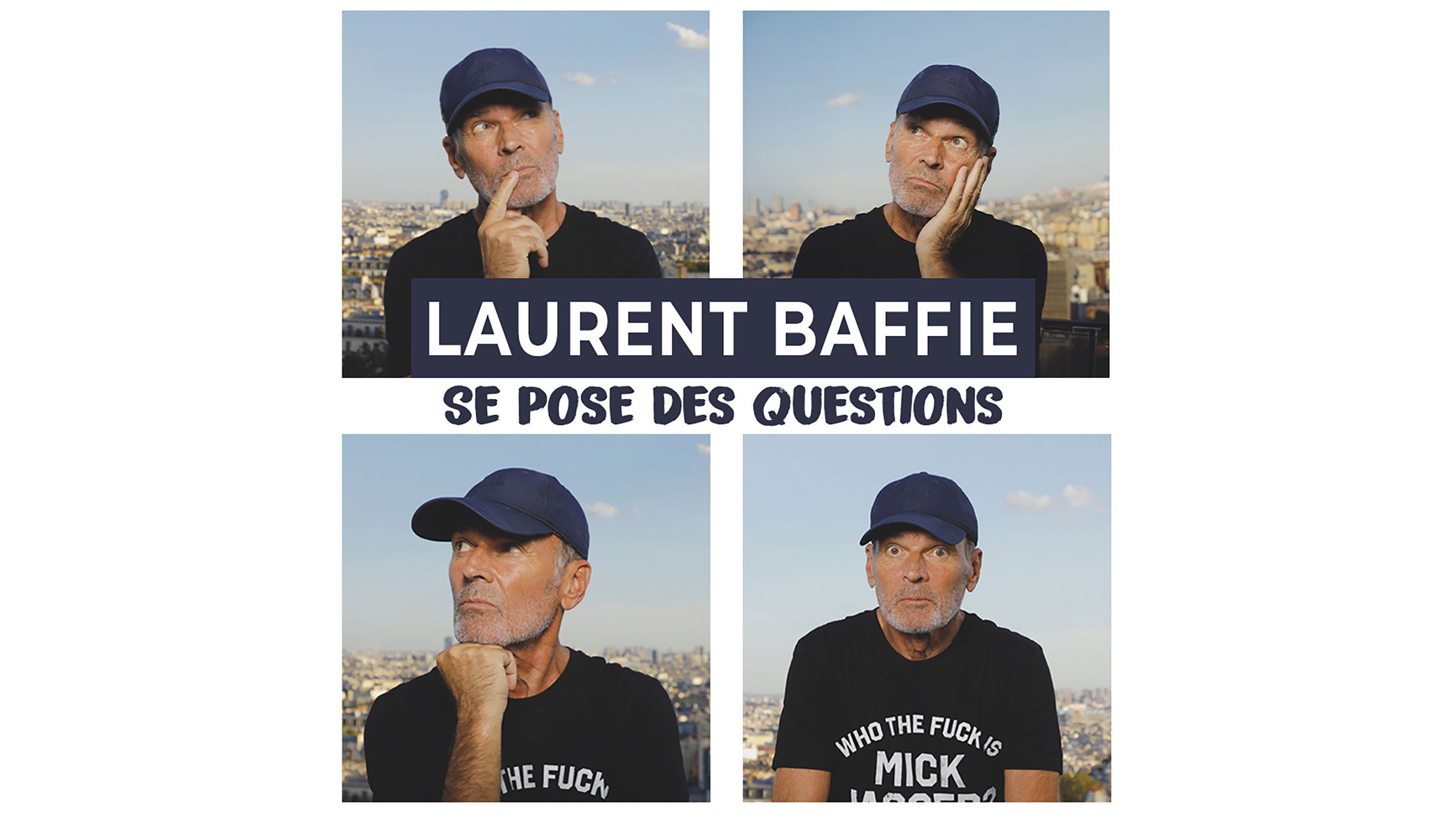 LAURENT BAFFIE « se pose des questions »Depuis toujours Laurent Baffie se pose des questions que personne ne se pose.Tant qu’il les publiait cela ne causait de tort à personne, mais aujourd’hui il monte sur scènepour faire réagir le public sur ses interrogations délirantes.Rajoutez à ça à toutes les impros dont ce fou est capable et son interactivité légendaire avecle public et vous obtiendrez un spectacle drôle et dépouillé dont le seul but est de vousdépouiller…de rire !Durée 1h30Spectacle déconseillé aux moins de 16 ans