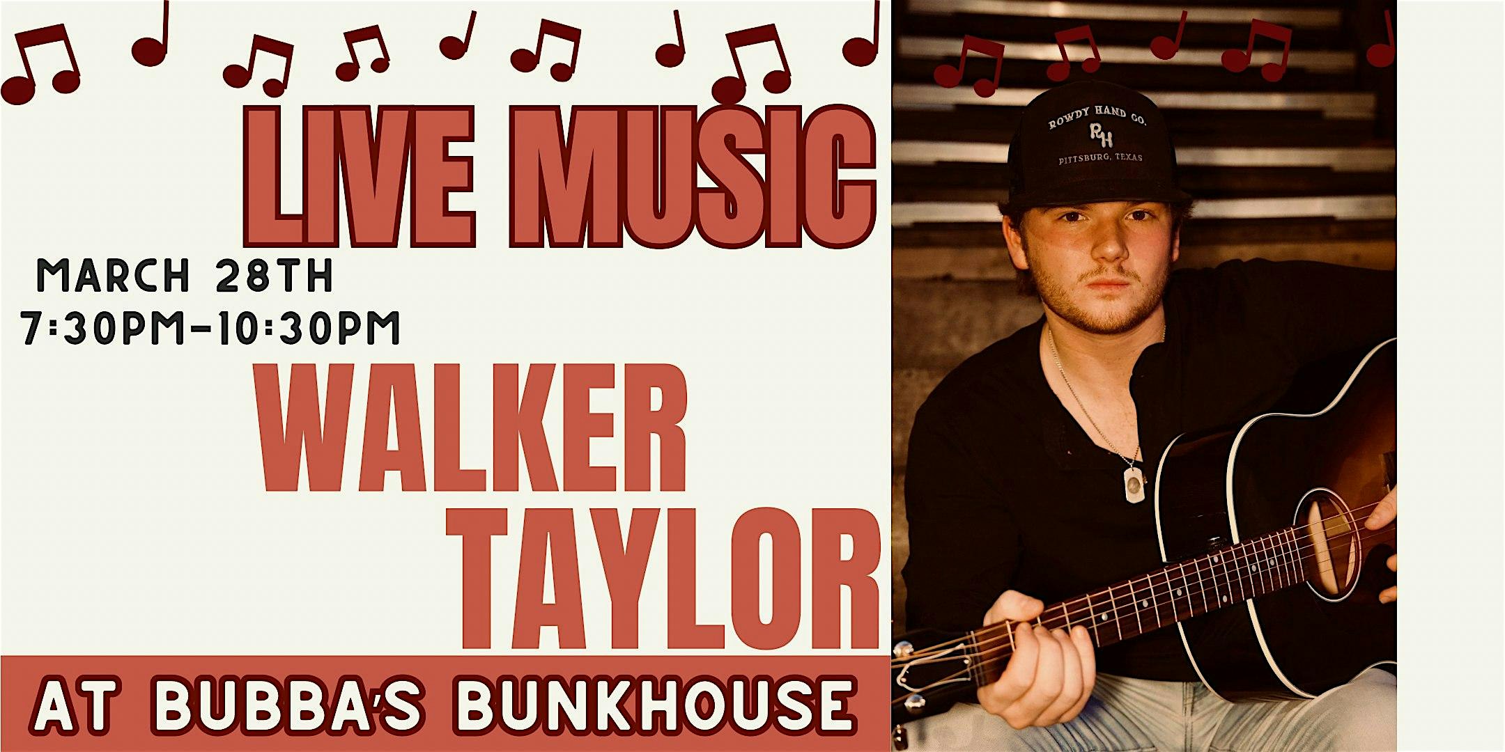 by admin27Feb Live Music Friday @ Bubba’s – Walker Taylor at Bubba’s Bunkhouse – Harrisburg, NC Live Music Friday @ Bubba’s – Walker Taylor at Bubba’s Bunkhouse – Harrisburg, NC 1 1 people viewed this event. Kick off your weekend with some chill vibes and live tunes from Walker Taylor this Friday night! Tickets-RSVP Link Date And Time Saturday, March 28th, 2026 07:00 PM (PST) Venue Bubba's Bunkhouse Location 4351 Main Street, Harrisburg, NC 28075 Event Types Concert or PerformanceMusic Event Category North Carolina Share With Friends Facebook Twitter Linkedin Xing Pinterest Share This Post: