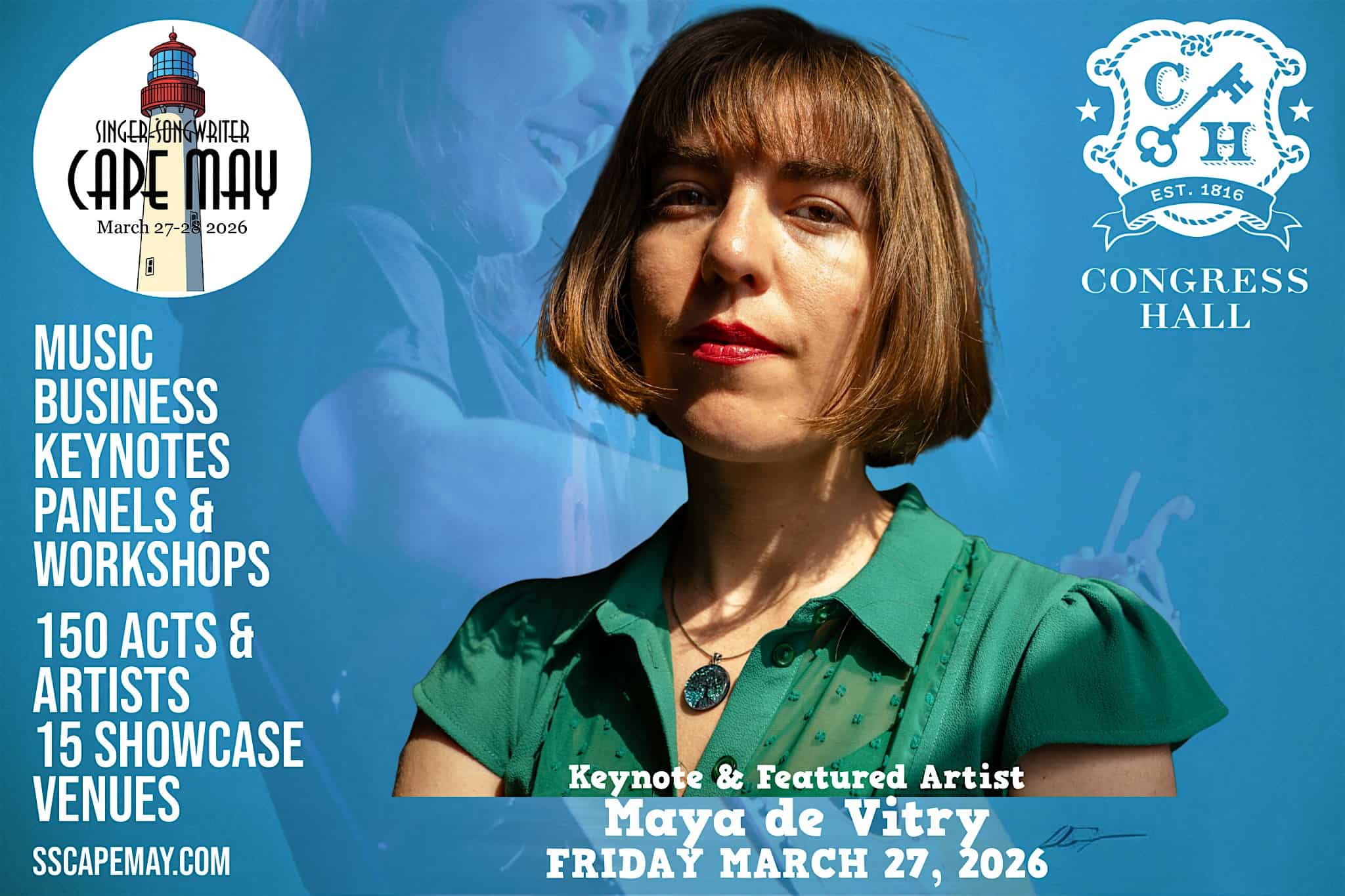 by admin14Feb Maya de Vitry – Featured Performer at Congress Hall – Cape May, NJ Maya de Vitry – Featured Performer at Congress Hall – Cape May, NJ 1 1 people viewed this event. Maya de Vitry from Nashville TN. In the ballroom at Congress Hall Friday March 27th 9pm. The doors open at 7pm, support at 7:30 & 8:15 PM Tickets-RSVP Link Date And Time Saturday, March 28th, 2026 11:00 PM (PST) Venue Congress Hall Location 200 Congress Place, Cape May, NJ 8204 Event Types Concert or PerformancePerforming & Visual Arts Event Category New Jersey Share With Friends Facebook Twitter Linkedin Xing Pinterest Share This Post: