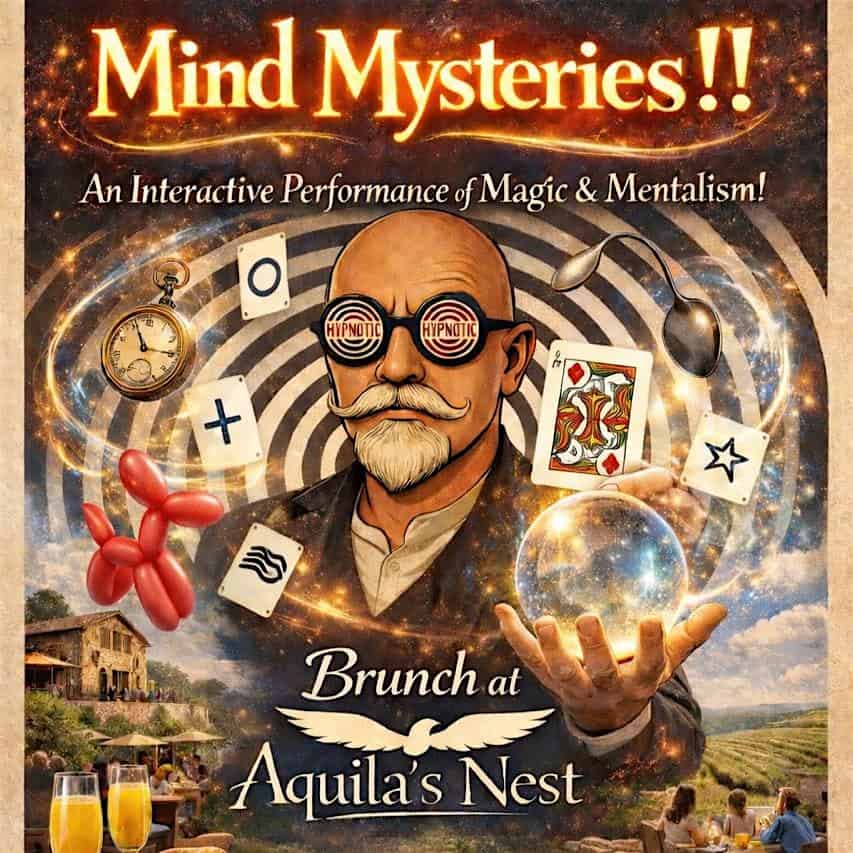 by admin14Feb Mind Mysteries Brunch Show at Aquila’s Nest Vineyards – Newtown, CT Mind Mysteries Brunch Show at Aquila’s Nest Vineyards – Newtown, CT 1 1 people viewed this event. Join us for a one-of-a-kind Saturday Brunch experience at Aquila’s Nest! Tickets-RSVP Link Date And Time Saturday, March 28th, 2026 04:00 PM (PST) Venue Aquila's Nest Vineyards Location 56 Pole Bridge Road, Newtown, CT 6482 Event Types Concert or PerformancePerforming & Visual Arts Event Category Connecticut Share With Friends Facebook Twitter Linkedin Xing Pinterest Share This Post: