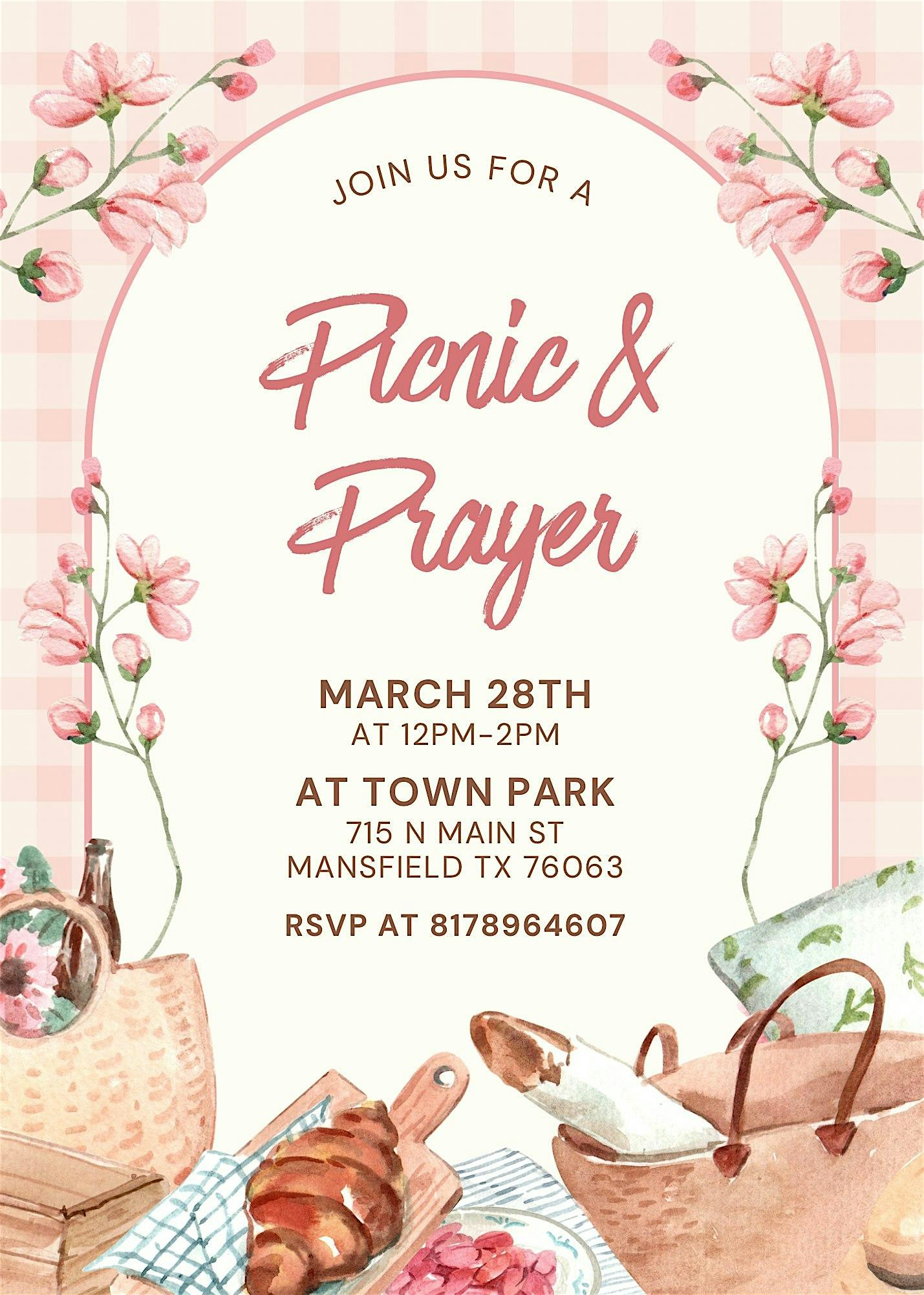 by admin27Feb Prayer & Picnic at 715 N Main St – Mansfield, TX Prayer & Picnic at 715 N Main St – Mansfield, TX 1 1 people viewed this event. Join us for a chill day of prayer and good food outdoors—let’s connect and relax together! Tickets-RSVP Link Date And Time Saturday, March 28th, 2026 @ 12:00 PM Location 715 North Main Street, Mansfield, TX 76063 Event Types Party or Social Gathering Event Category Texas Share With Friends Facebook Twitter Linkedin Xing Pinterest Share This Post: