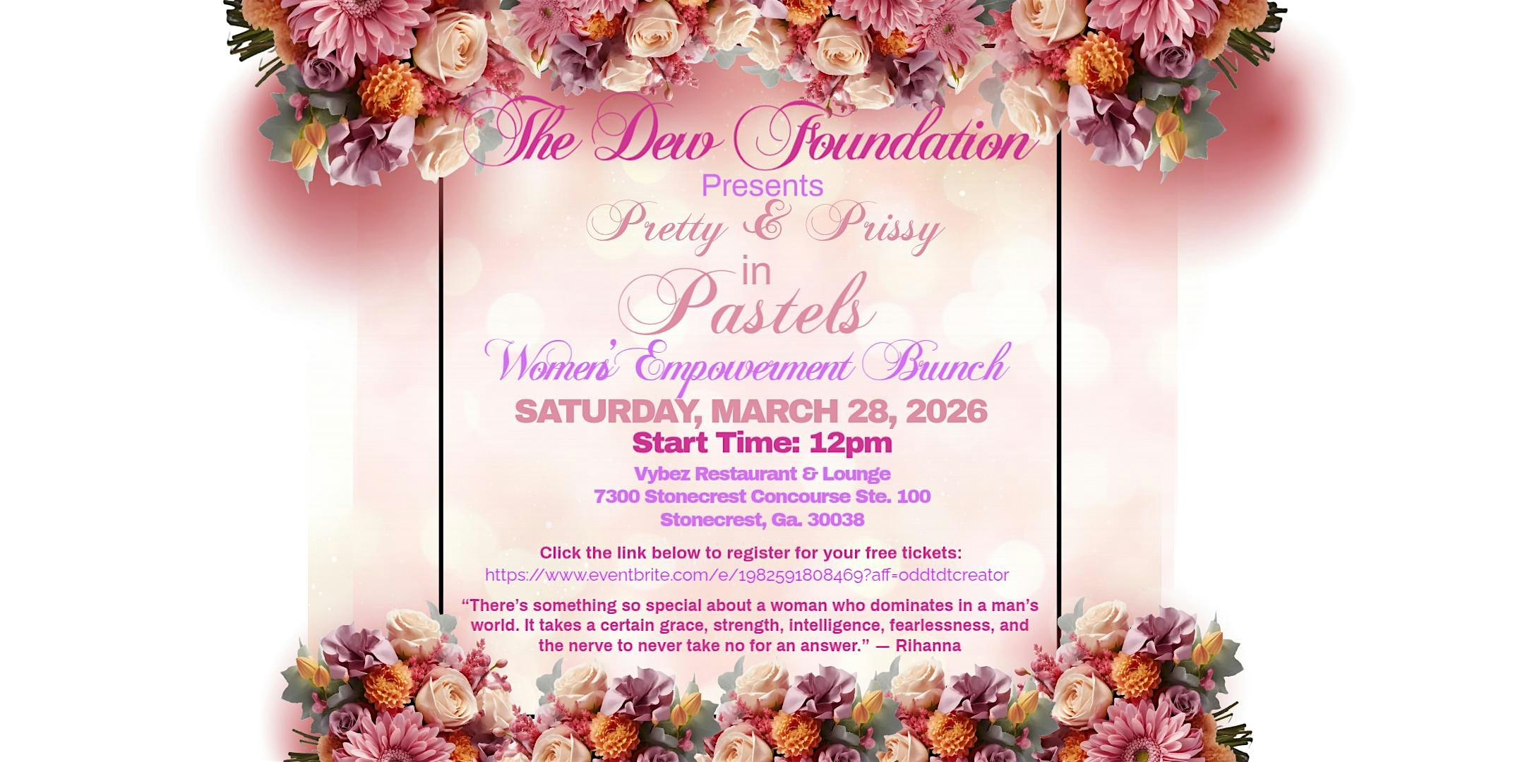 by admin27Feb Pretty & Prissy in Pastels Women Empowerment Brunch at Vybez Restaurant & Lounge – Stonecrest, GA Pretty & Prissy in Pastels Women Empowerment Brunch at Vybez Restaurant & Lounge – Stonecrest, GA 1 1 people viewed this event. Join us for a fun, pastel-themed brunch where women lift each other up and shine bright together! Tickets-RSVP Link Date And Time Saturday, March 28th, 2026 @ 12:00 PM Location 7300 Stonecrest Concourse, Stonecrest, GA 30038 Event Types Community & CultureParty or Social Gathering Event Category Georgia Share With Friends Facebook Twitter Linkedin Xing Pinterest Share This Post: