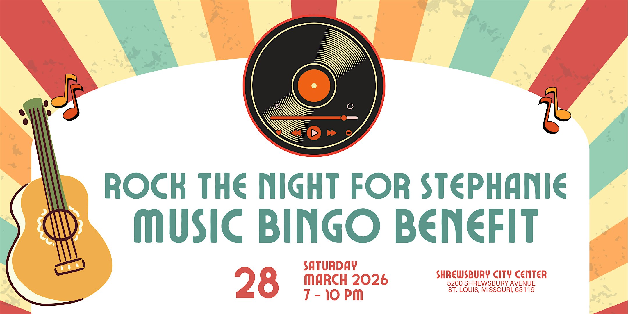 by admin13Feb Rock the Night for Stephanie: Music Bingo Benefit at Shrewsbury City Center – St. Louis, MO Rock the Night for Stephanie: Music Bingo Benefit at Shrewsbury City Center – St. Louis, MO 1 1 people viewed this event. Join us for Rock the Night for Stephanie: Music Bingo Benefit—fun, prizes, and good vibes all for a great cause! Tickets-RSVP Link Date And Time Saturday, March 28th, 2026 11:00 PM (PST) Venue Shrewsbury City Center Location 5200 Shrewsbury Avenue, St. Louis, MO 63119 Event Types Charity & CausesParty or Social Gathering Event Category MissouriSt. Louis Share With Friends Facebook Twitter Linkedin Xing Pinterest Share This Post: