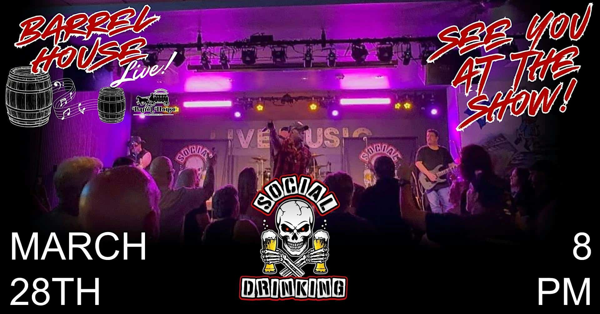 by admin23Feb Social Drinking at Barrel House Live! at Barrel House Live – Fallston, MD Social Drinking at Barrel House Live! at Barrel House Live – Fallston, MD 2 2 people viewed this event. Local rockers Social Drinking are bringing their full show to Barrel House Live! Tickets-RSVP Link Date And Time Saturday, March 28th, 2026 08:00 PM (PST) Venue Barrel House Live Location 2403 Belair Road, Fallston, MD 21047 Event Types Food & DrinkParty or Social Gathering Event Category Maryland Share With Friends Facebook Twitter Linkedin Xing Pinterest Share This Post: