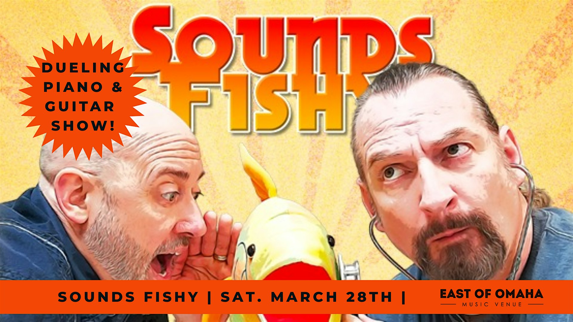 by admin24Feb Sounds Fishy Debuts at East Of Omaha at East of Omaha – Griswold, IA Sounds Fishy Debuts at East Of Omaha at East of Omaha – Griswold, IA 2 2 people viewed this event. Dueling guitar show! Playing all your favorite acoustic requests! Performed in our ‘West Venue’ Tickets-RSVP Link Date And Time Saturday, March 28th, 2026 07:00 PM (PST) Venue East of Omaha Location 524 Main Street, Griswold, IA 51535 Event Types Concert or PerformanceMusic Event Category Iowa Share With Friends Facebook Twitter Linkedin Xing Pinterest Share This Post: