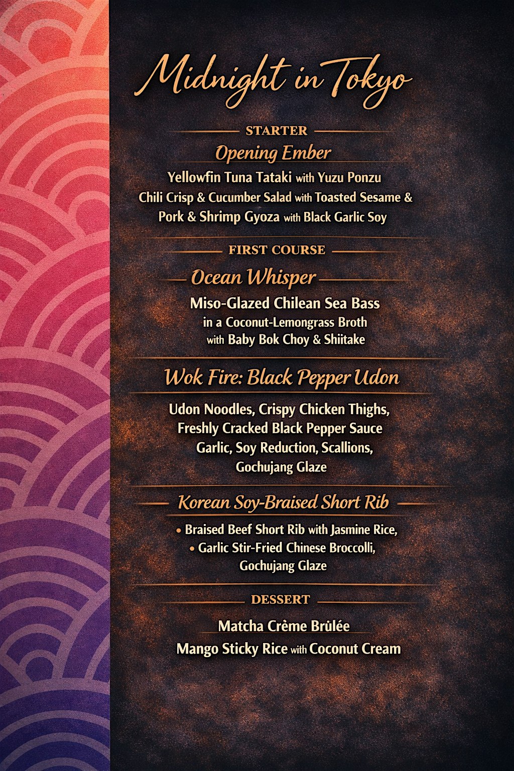 The Velvet Fork: Midnight in Tokyo at Ever’man Cooperative Grocery & Cafe Garden Street – Pensacola, FL The Velvet Fork: Midnight in Tokyo at Ever’man Cooperative Grocery & Cafe Garden Street – Pensacola, FL 1 1 people viewed this event. An immersive Asian dining experience featuring dumplings, miso sea bass, and black pepper udon in an intimate luxury setting. Tickets-RSVP Link Register for event Date And Time Saturday, March 28th, 2026 @ 06:00 PM Location 315 West Garden Street, Pensacola, FL 32502 Event Types Dinner or GalaFood & Drink Event Category FloridaPensacola Share With Friends Facebook Twitter Linkedin Xing Pinterest